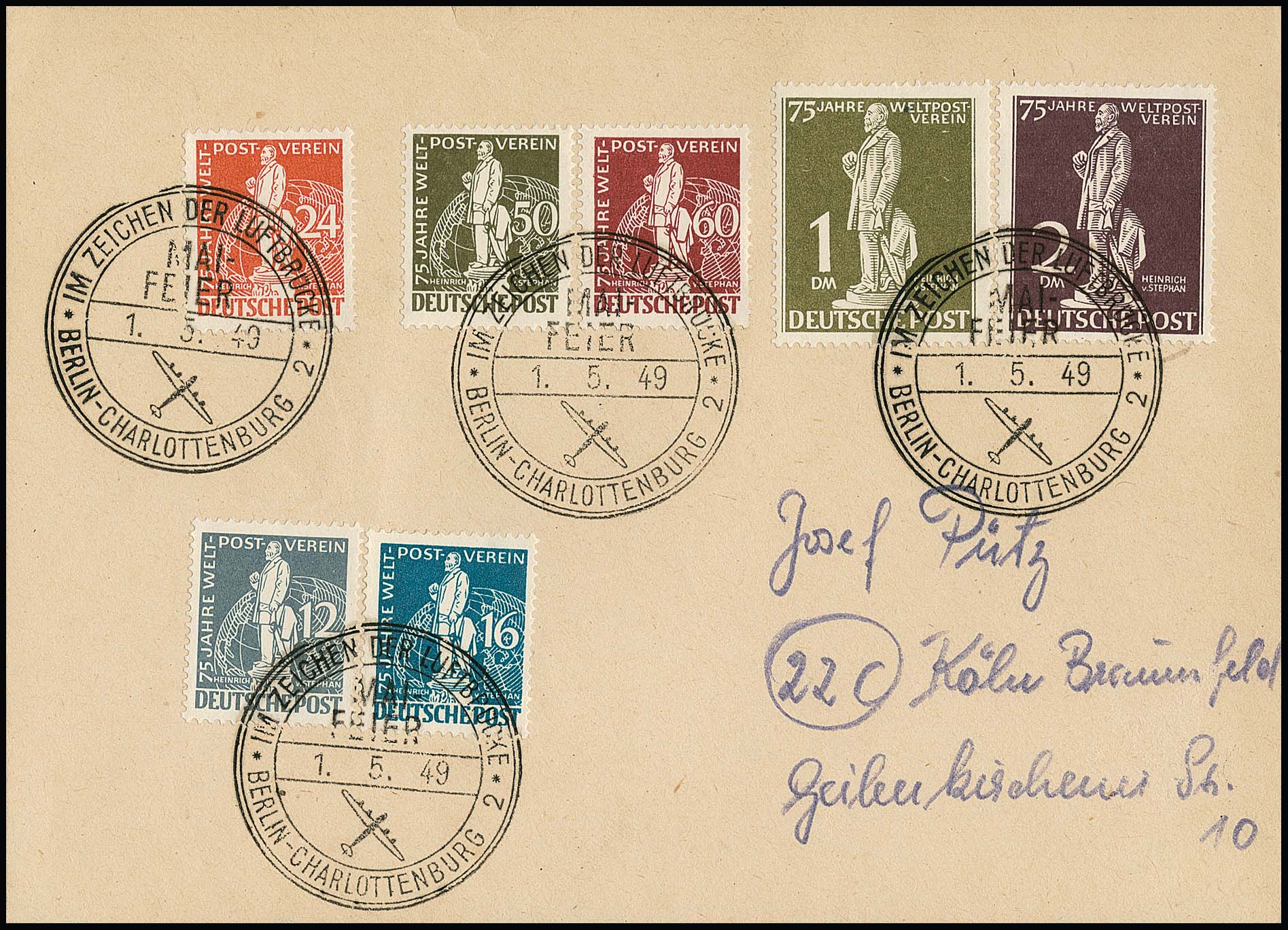 UPU auf Couvert mit Luxus-SST, Mi. lose 320,- +