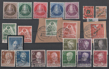 50er Jahre, gestempelte Zusammenstellung mit besseren, dabei UPU, Goethe, alle Glocken, u.a. dreimal Klöppel links, Jugend, Männer etc. Mi. 1555,-