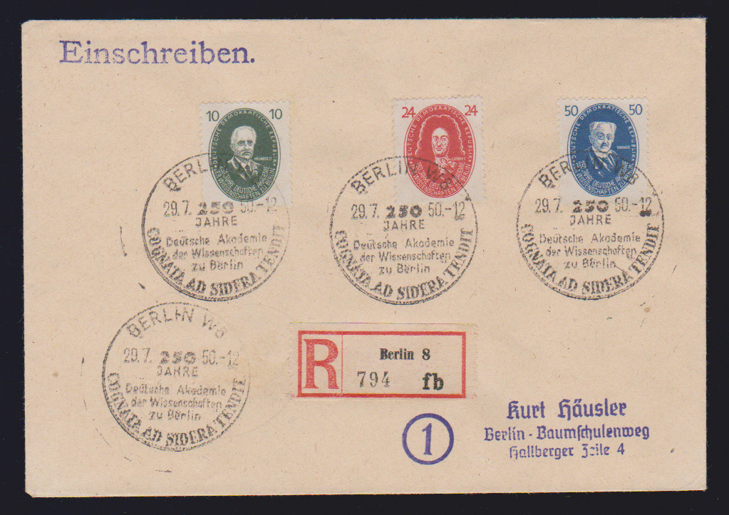 Pieck kpl. auf drei sauber gest. R-/R-Expreßbriefen, sowie Akademie auf zwei Orts-R-Briefen aus Berlin