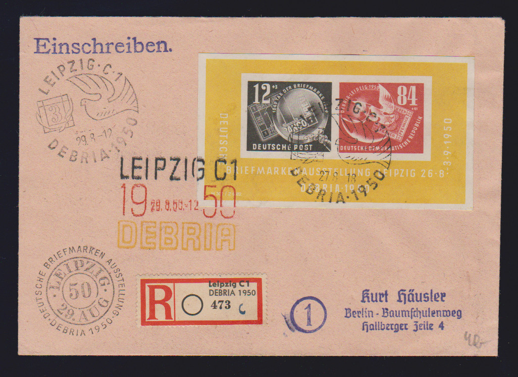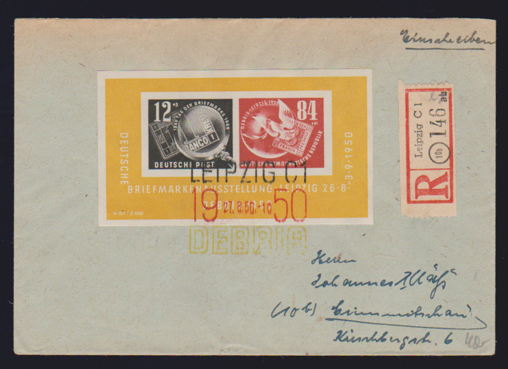 Debria-Block, zwei R-Briefe mit versch. SST, Mi. 560,-