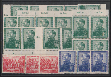 Deutsch-Chin. Freundschaft, mind. vier ungestempelte Serien, dabei 17mal 12 Pfg. inkl. Bogeneckenpaar mit DV