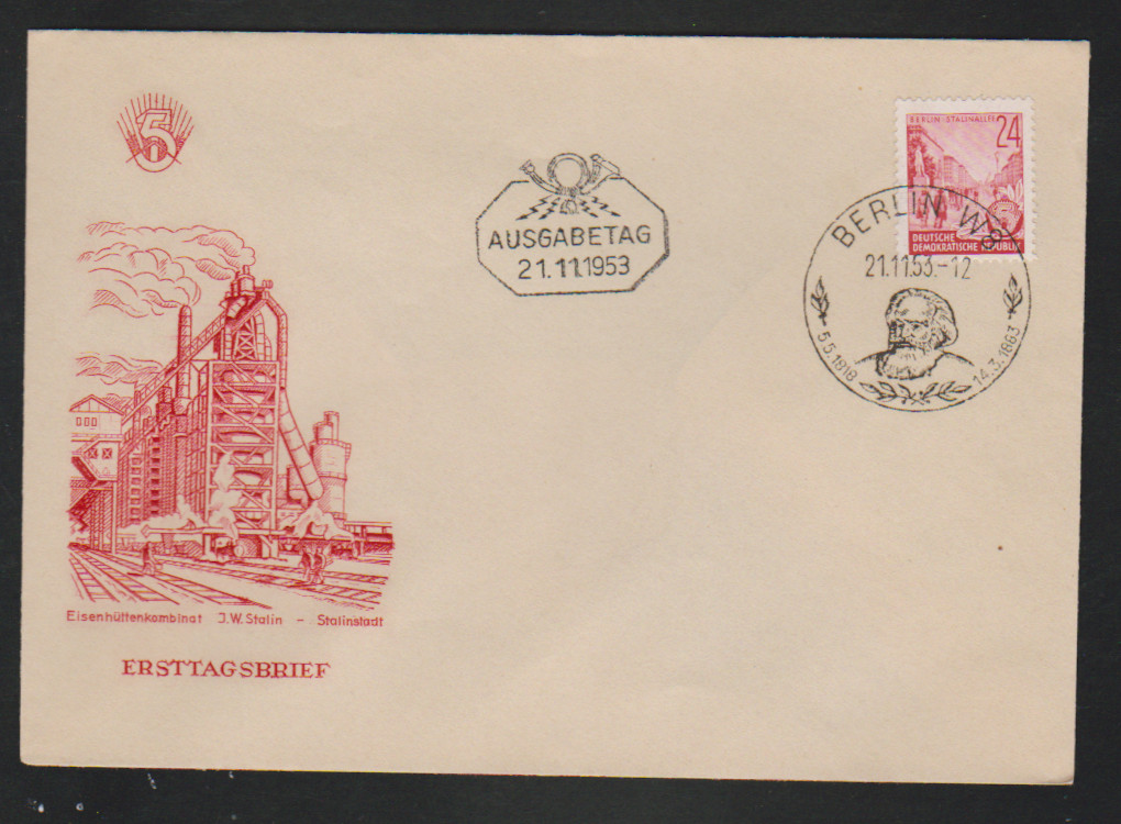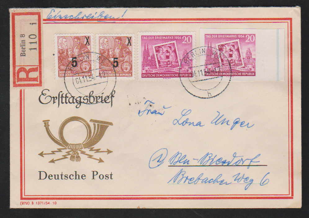 80 Pfg. Thälmann Lack vom linken Bogenrand (oben am Rand kleine Tönung), nebst 24 Pfg. Pieck, auf portoger. gelaufenem Expreßbrief von Halle nach Klostermansfeld 1953, Mi. 2400,-. Attest Schönherr: "Die Marken befinden sich in einwandfreiem Zustand."