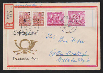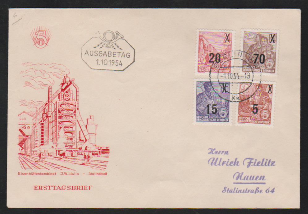 FJP 1953 und FJP-Aufdrucke 1954 auf gesamt sechs FDCs, Mi. 1070,-, dazu zwei weitere Belege inkl. Nr. 445B