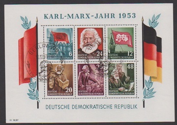 Marx-Blockpaar gestempelt (Tages- bzw. Sonderstempel), Mi. 600,-