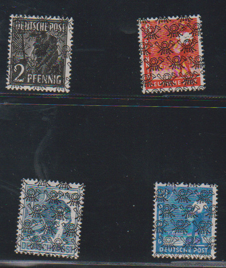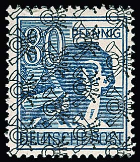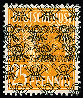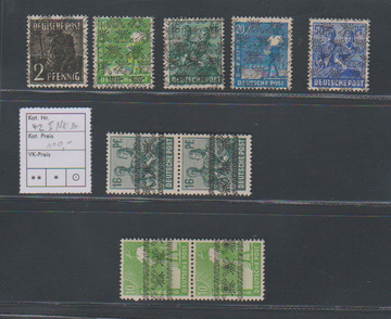 2, 6, 8, 12, 15, 16, 24 und 25 Pfg. mit Doppel-Aufdruck, sowohl Band als auch Netz, je postfrisch, selten! Mi. 1100,-