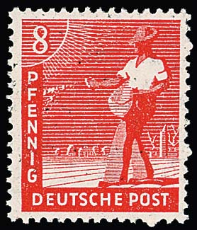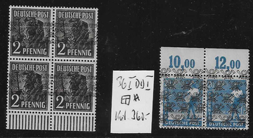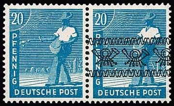 8 Pfg. Netz sowie 15 Pfg. (typische Bogenanhaftungen) und 20 Pfg. Band, je in postfrischen Paaren, eine Marke mit und eine Marke je ohne Aufdruck, Mi. 280,-