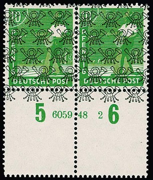 10 Pfg. Arbeiter-Bandaufdruck im postfrischen Unterrandpaar, unten sowohl HAN "6059.48 2" als auch zwei vierseitig gezähnte Leerfelder in Markengröße