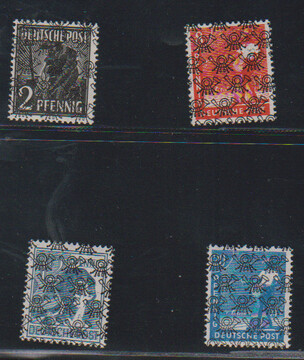 2, 8, 12 und 20 Pfg. je mit doppeltem Netzaufdruck, davon einer rückseitig, postfrisch, Mi. 360,-