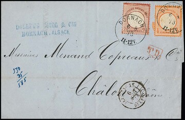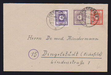 6 Pfg. breitrandig ungezähnt, nebst 12 u. 6 Pfg., auf portoger. Brief aus Dresden, Mi. "-.-"