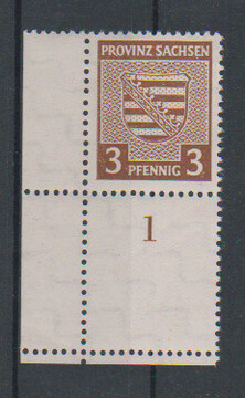 3 Pfg. Wappen postfrisch aus der linken unteren Bogenecke, unten mit vierseitig gezähntem Leerfeld, Mi. 200,-