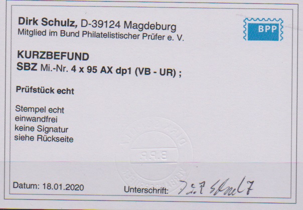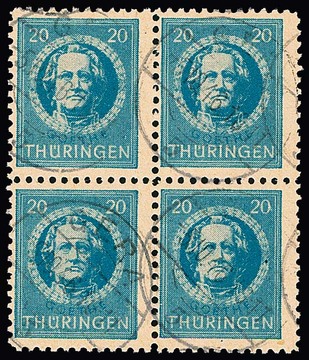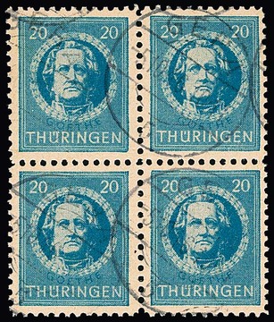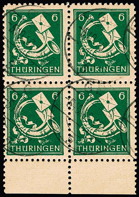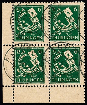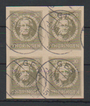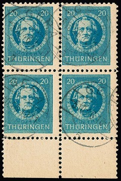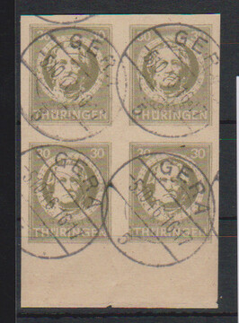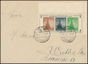 Antifa-Block aus der rechten oberen Bogenecke auf Sammler-Orts-Couvert aus Wutha, Attest Ströh. Mi. lose 1100,- +