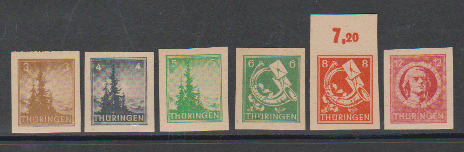 Freimarken ungezähnt postfrisch, dabei 3 und 4 Pfg. Spargummi, sign. Schulz. Mi. 350,-