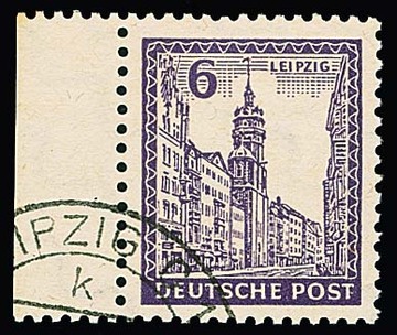 6 Pfg. dunkelrotviolett, gestempeltes Randstück, sign. Ströh. Mi. 600,-