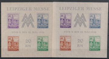 Messe-Block, beide Wasserzeichen je postfrisch, sign. Ströh bzw. Jasch. Mi. 500,-, beide mit Plattenfehlermarke 163I