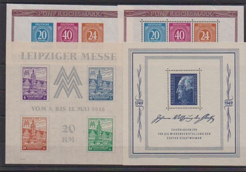 Leipziger Messe- und Goethe-Block, sowie Kontrollrat-Blockpaar 12A/B, je postfrisch. Mi. 570,-