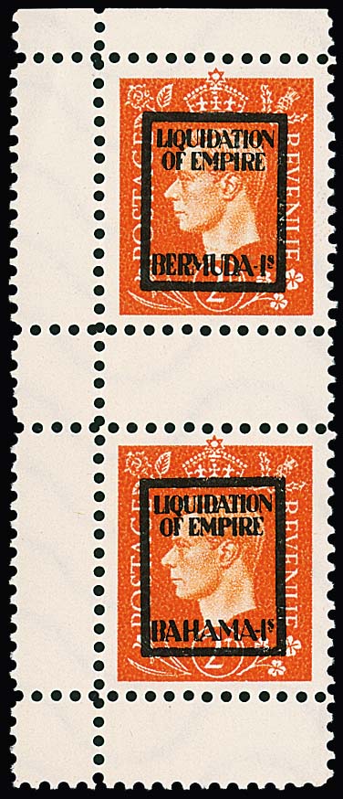 2 P. Georg, Zusammendruck "Bermuda" und "Bahamas" im wie verausgabt ungebrauchten linken Randpaar. Mi. lose 280,- +