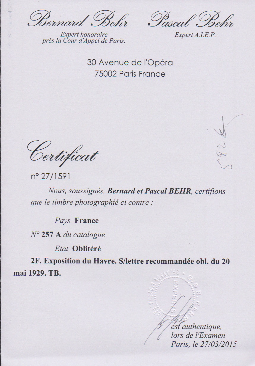 2 + 5 Fr. Ausstellung Le Havre einzeln auf R-Brief mit Messe-SST 1929 nach Paris, Attest Behr. Mi. lose 600,-
