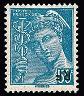 Merkur, komplette postfrische Serie mit kopfstehendem Aufdruck "RF", Michel/Yvert nicht gelistet!