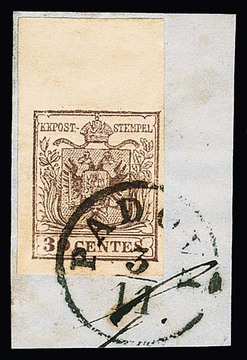 30 C. braun, oben 13mm Bogenrand (!), auf Prachtbriefstück mit vollem K1 "Padova"