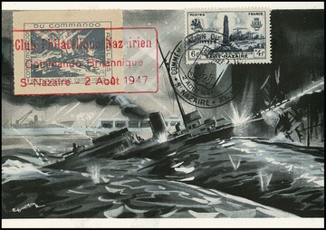 St. Nazaire, 1947, Gedenkvignette anläßlich des 5. Jahrestages der britischen Operation "Chariot" 1947, nebst Frankreich Nr. 785, auf entspr. Maximumkarte, Attest Pieles