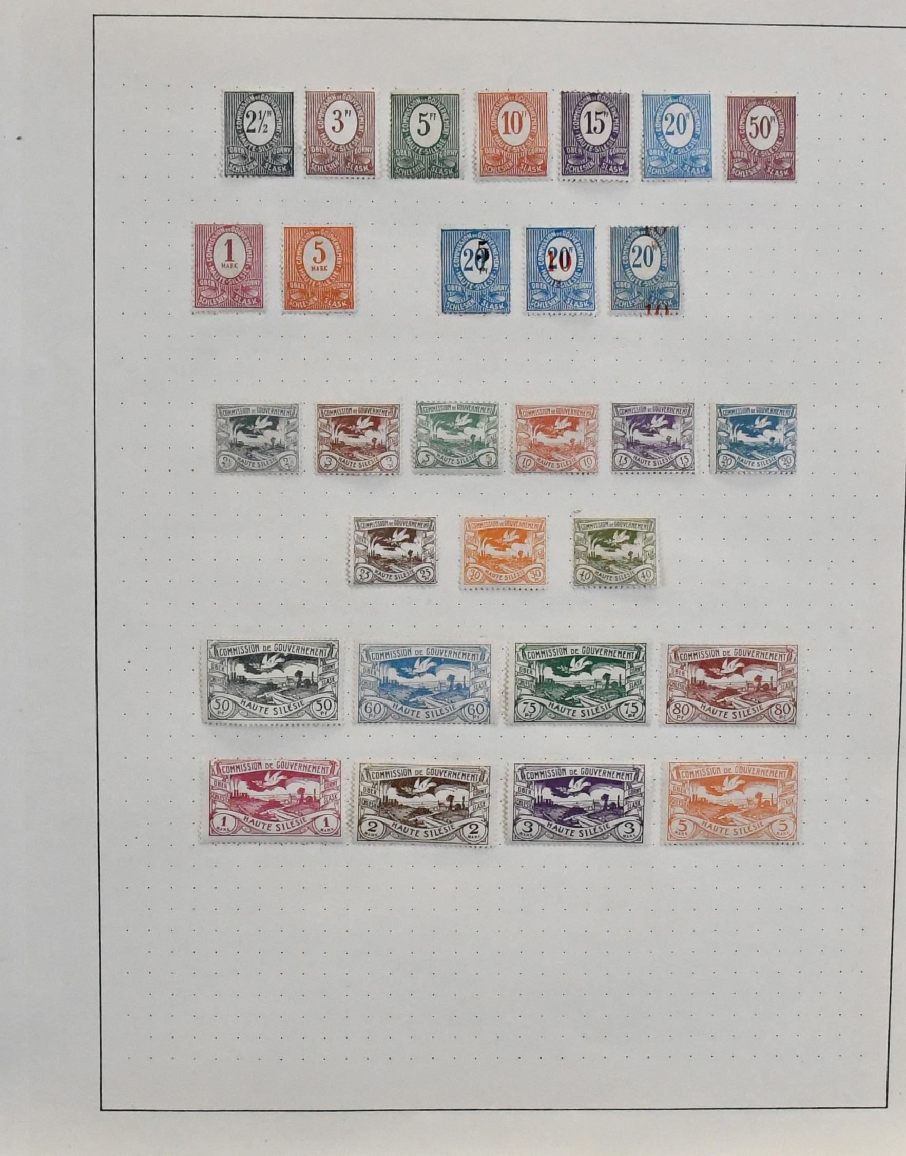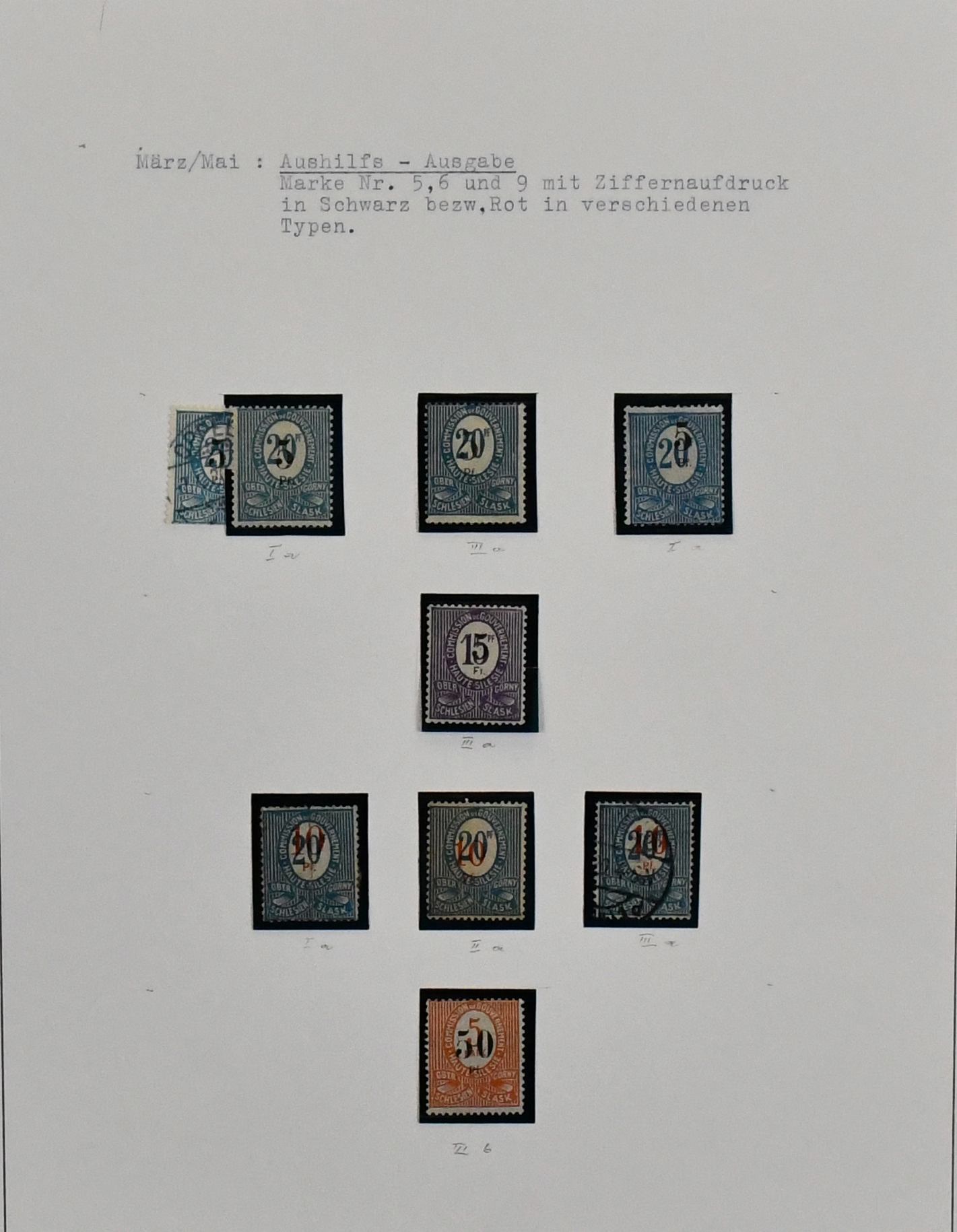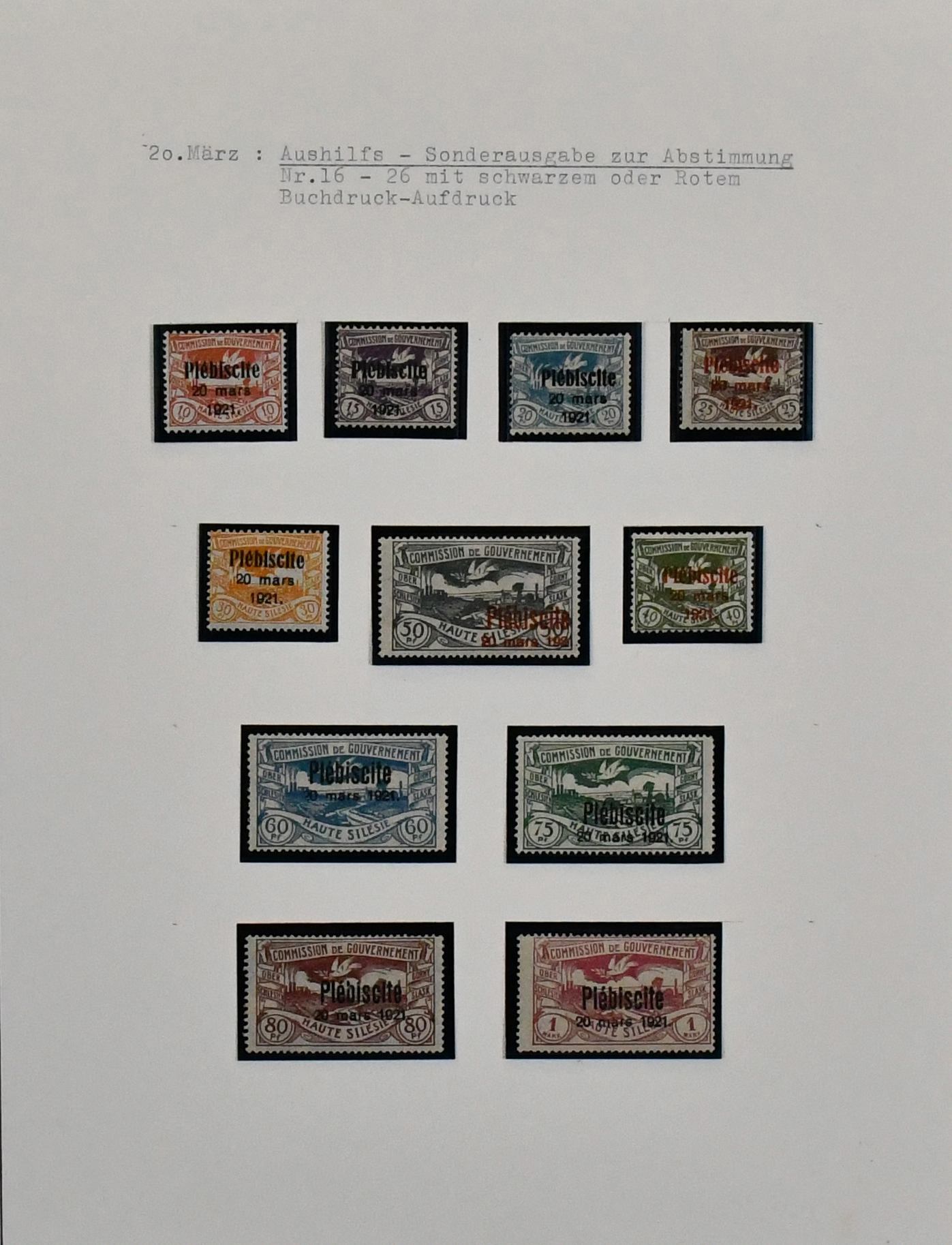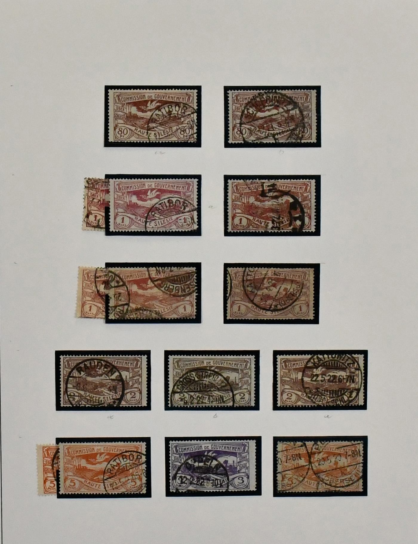 Oberschlesien, von Nr. 1-43 komplette Slg., teils mehrfach, dekorativ auf Blättern. Dabei Nr. 8/9 gebr. u. ungebr., Nr. 10/12 inkl. guter Nr. 10F (Mi. 500,-), 13/29 mehrf., 30/40 (150,-) usw. Dazu 80 Dienst-Werte
