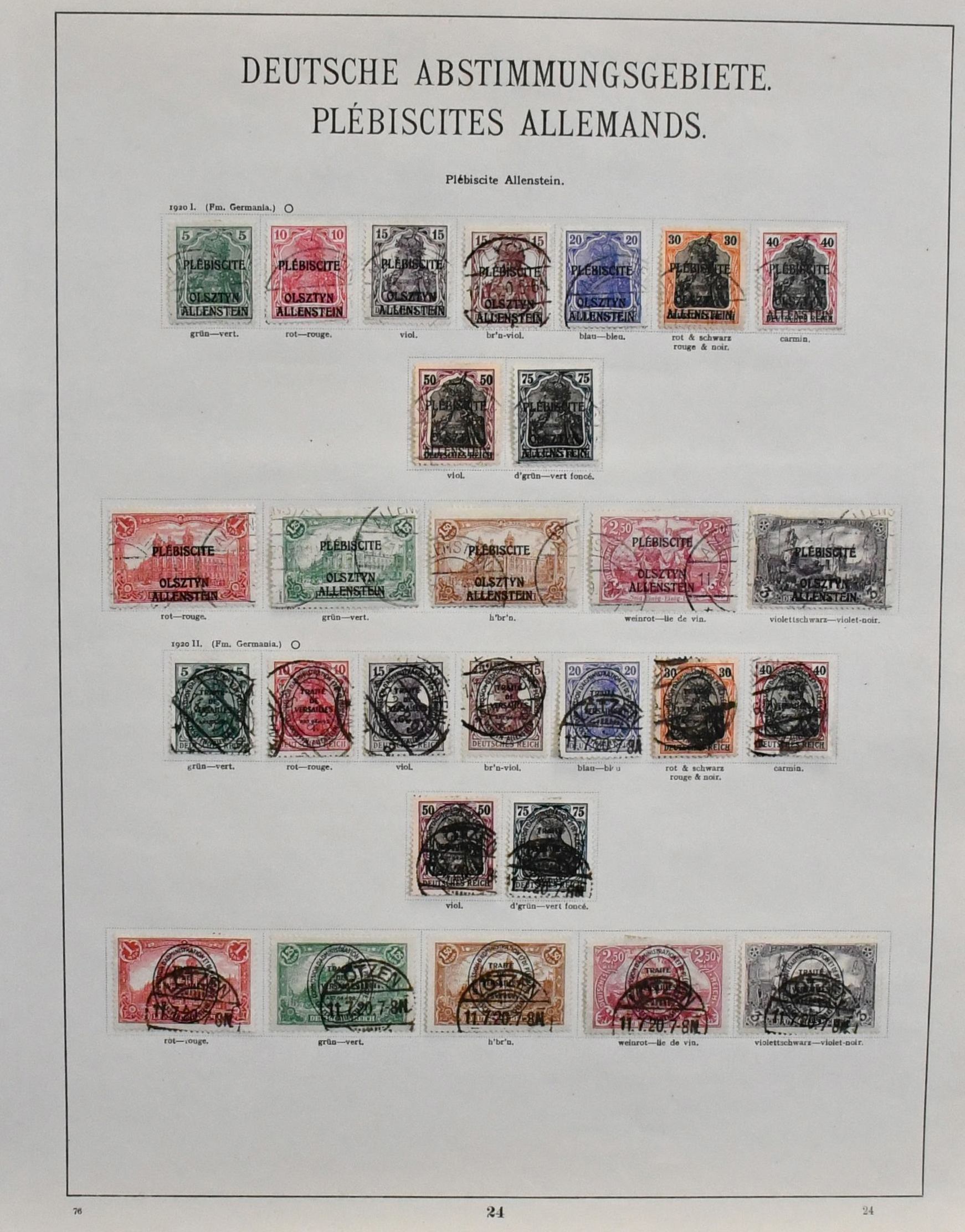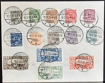 Abstimmungsgebiete, gest. und ungebr. Slg. auf alten Albumblättern, dabei Allenstein in beiden Erhaltungen je komplett, Marienwerder mit Nr. 1-11 u. 13-14 gest., Nr. 16 auf Briefstück, 26-29 gest., 30-43 gest., Oberschlesien Nr. 1-9, 10-12, 30-35, je gest., sowie Schleswig mit Nr. 15-25 gest. etc.