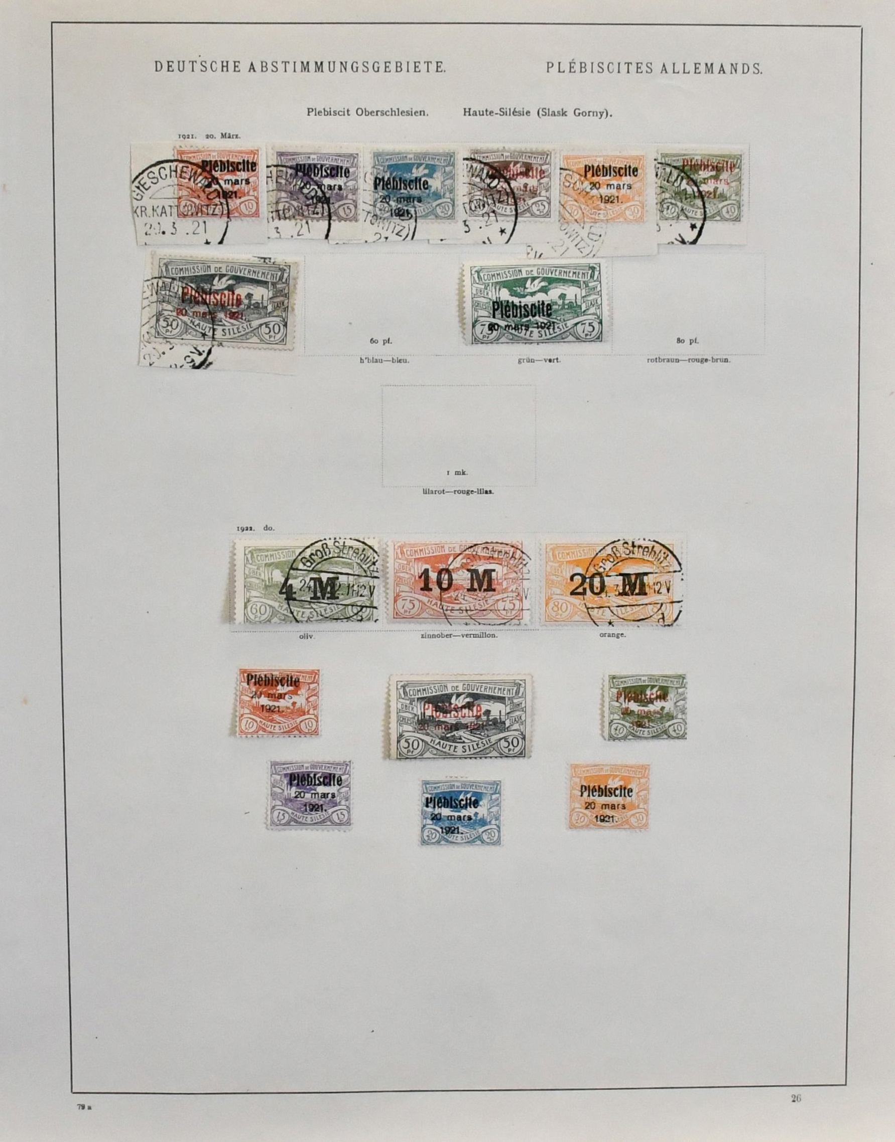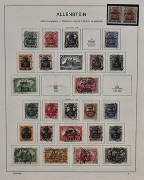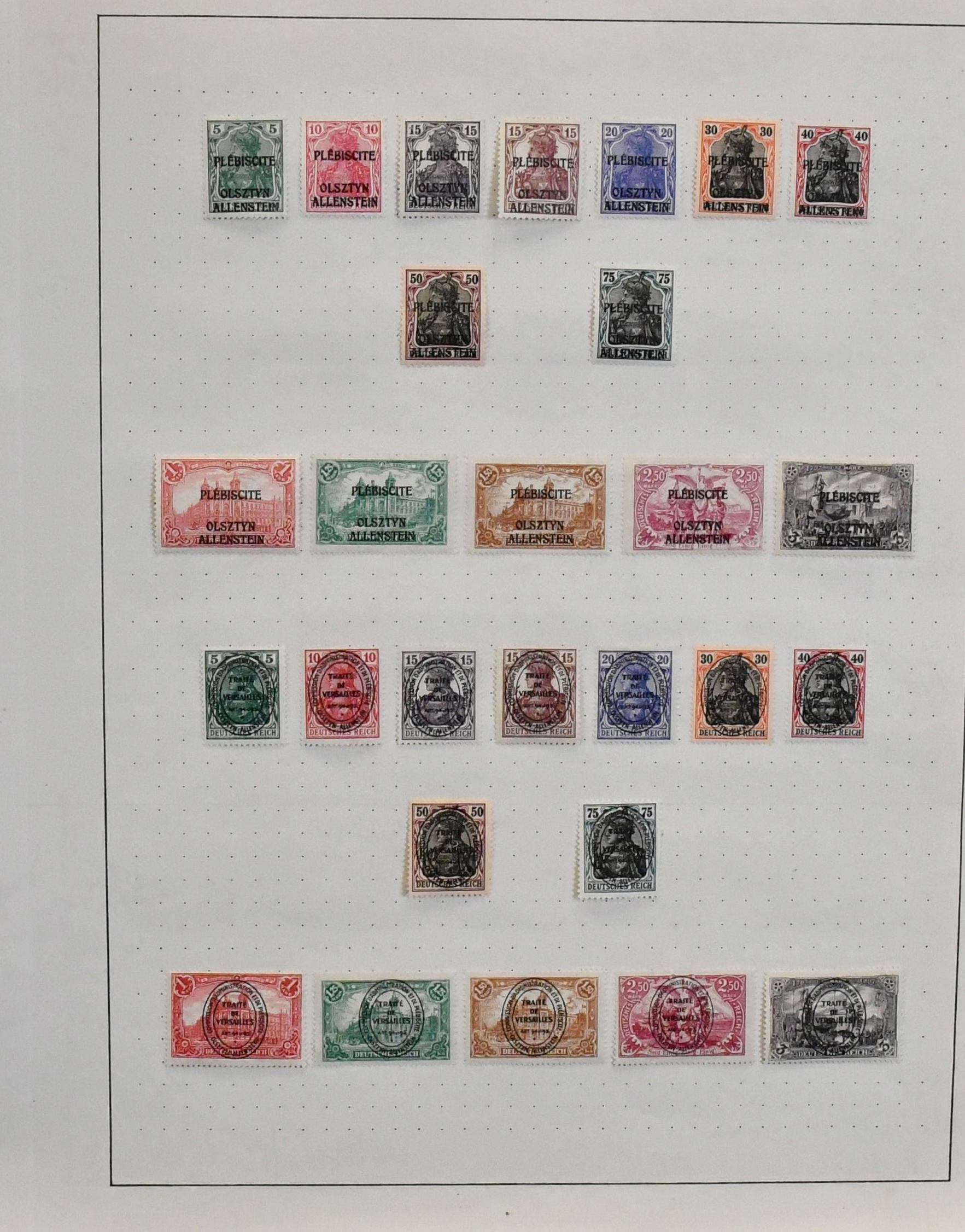 Deutsche Abstimmungsgebiete, gest. Sammlung mit Allenstein, Marienwerder und Oberschlesien, auf alten Schaubek-Vordrucken. Dazu Allenstein unverausgabte Nr. II im tadellos postfr. Paar (Mi. 400,-)