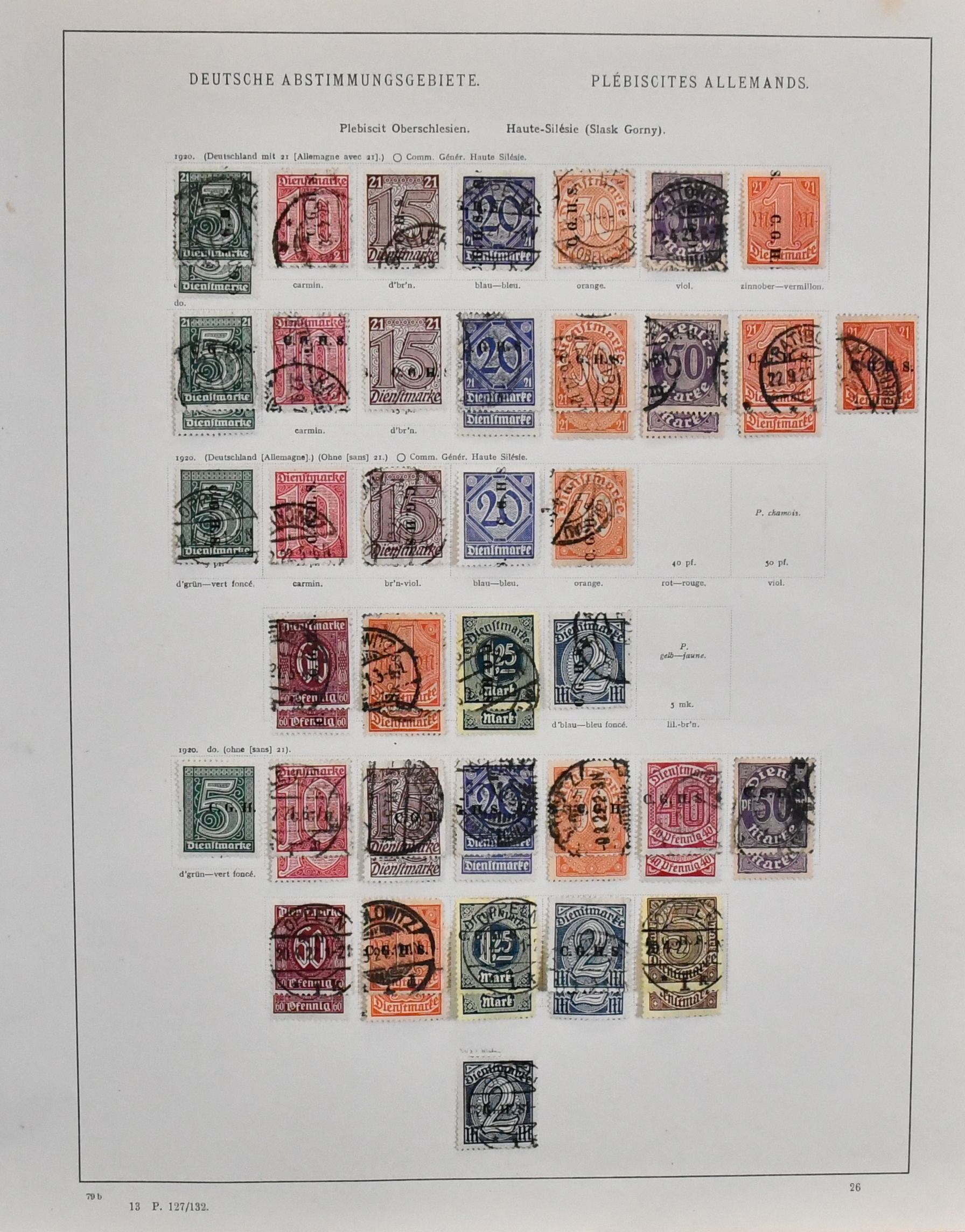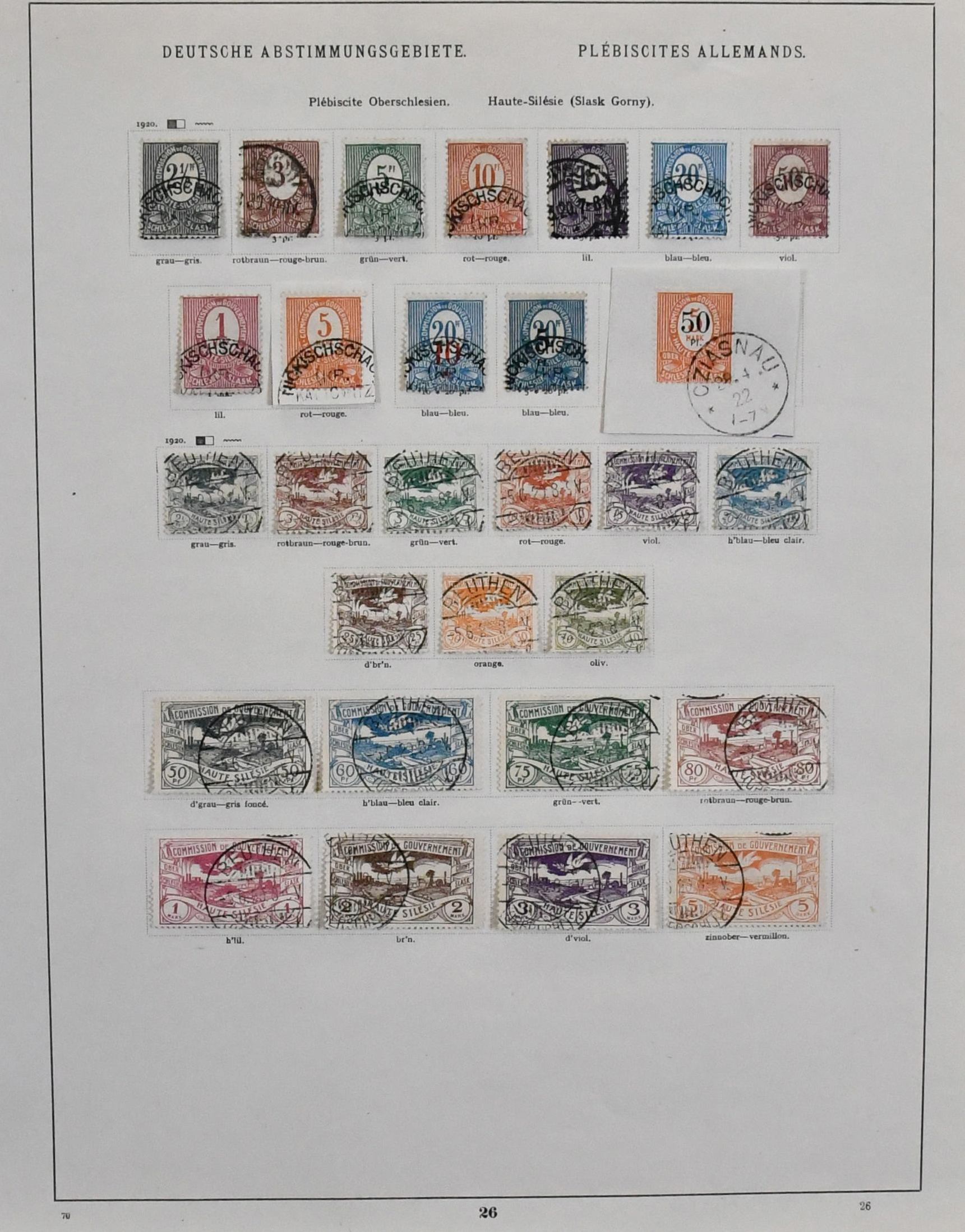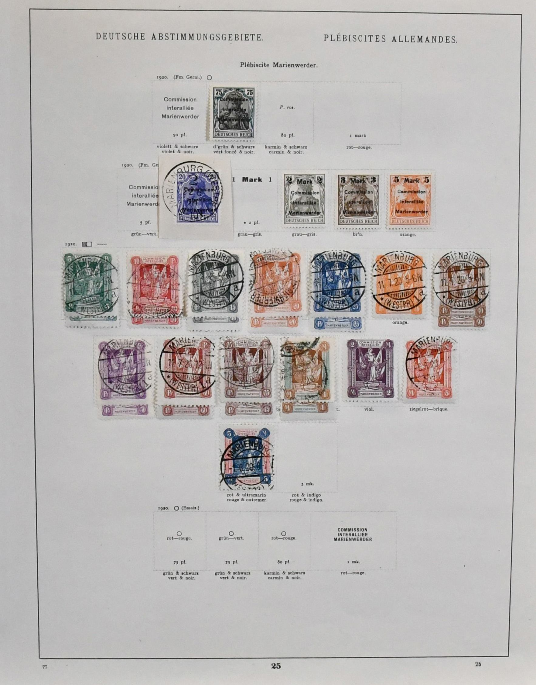 Deutsche Abstimmungsgebiete, Slg. mit u.a. Allenstein ab gest. Nr. 1/14, Marienwerder ab Nr. 1/13, mit Nr. 30/43 gest., Oberschlesien Nr. 1/9 gest., 10F ungebr. (Mi. 500,-) usw., auf Leuchtturm-Vordrucken