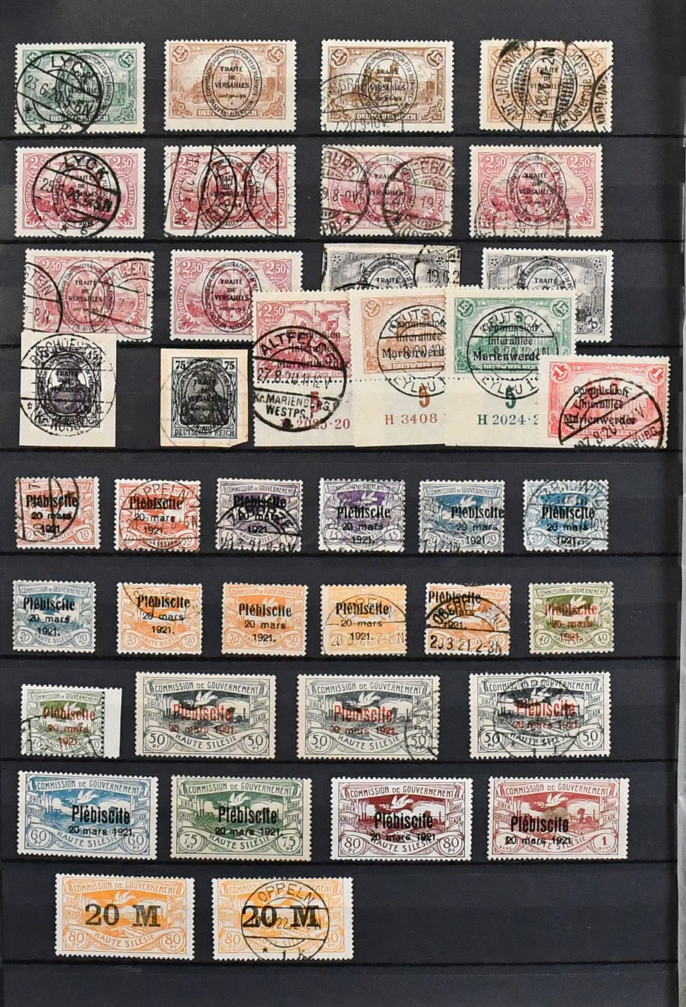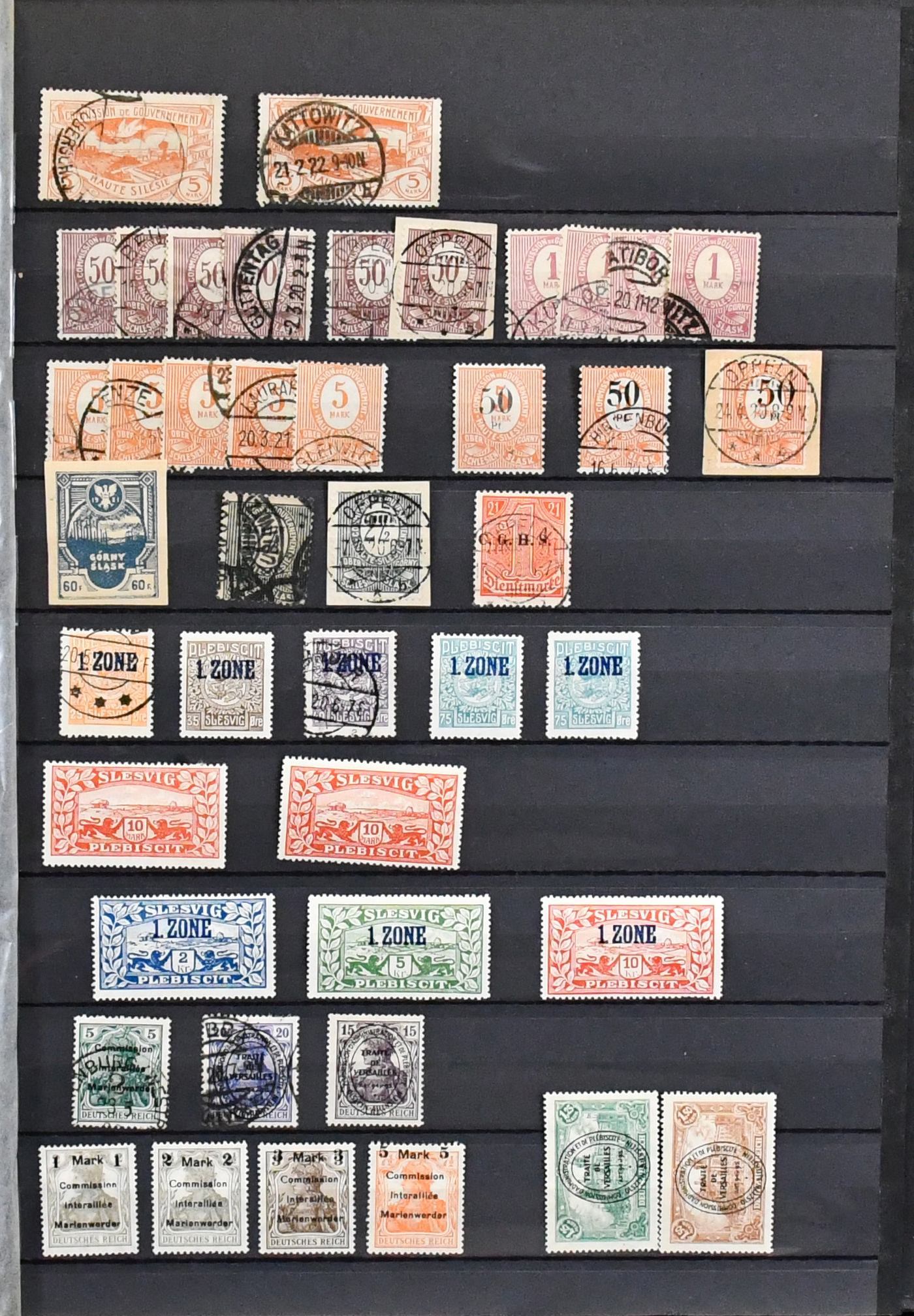 Deutsche Abstimmungsgebiete, Zusammenstellung besserer Ausgaben, dabei u.a. Allenstein inkl. Nr. 4 u. 18 je mehrfach (zusammen acht Werte), 40 Querformate, Marienwerder Nr. 22/25, Oberschlesien Nr. 7/9 je mind. viermal gest., Nr. 12 zweimal gest. (Mi. 130,-), 30/40 teils mehrf mit insgesamt 20 Werten, Schleswig Nr. 26/28b postfr. (Mi. 470,-) usw. Hoher vierstelliger KW!