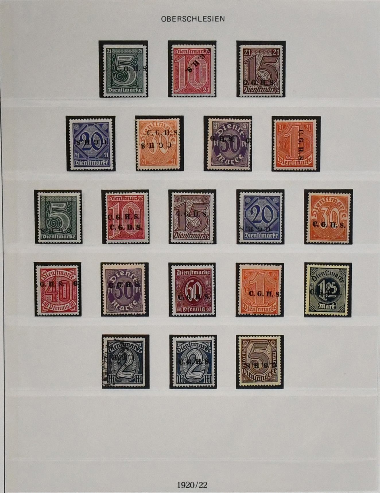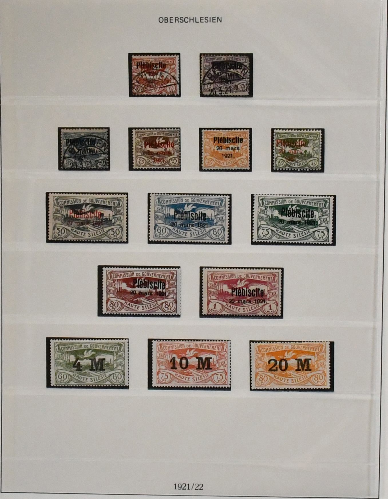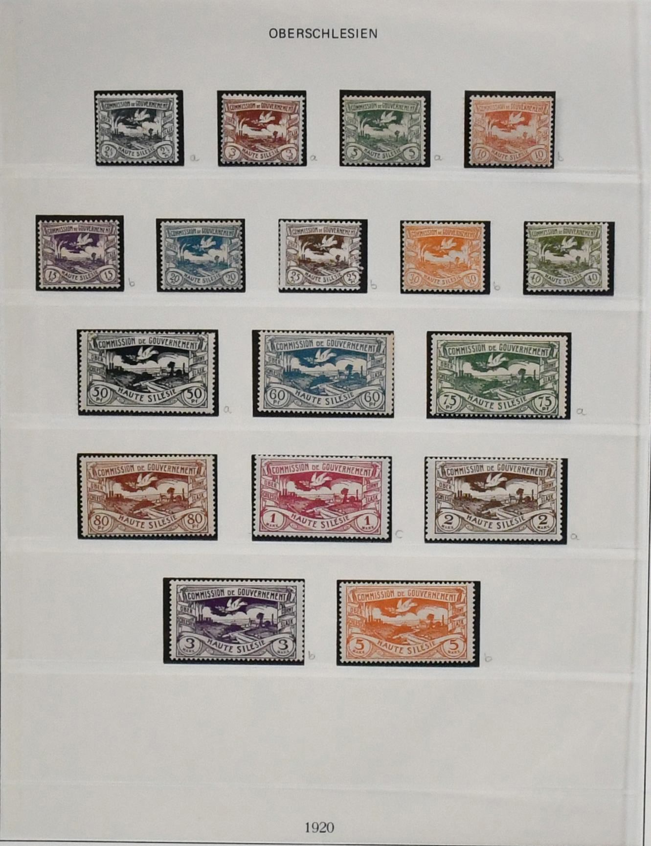 Oberschlesien, kpl. Slg. mit Nr. 1-12, inkl. Nr. 10F postfr. (nur Altsignatur, bitte ansehen), 13-29 postfr., 30-43, sowie Dienst Nr. 1-20, auf Vordrucken