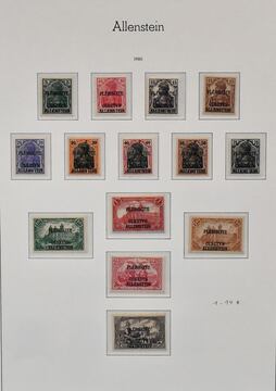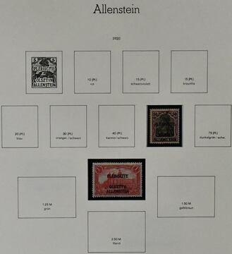 Allenstein, von Nr. 1-28 komplette Slg. auf Leuchtturm-Vordrucken. Dazu unverausgabte Nr. I/II (Mi. 400,-) und IV/V (Mi. 400,-), je sauber postfrisch