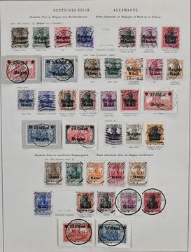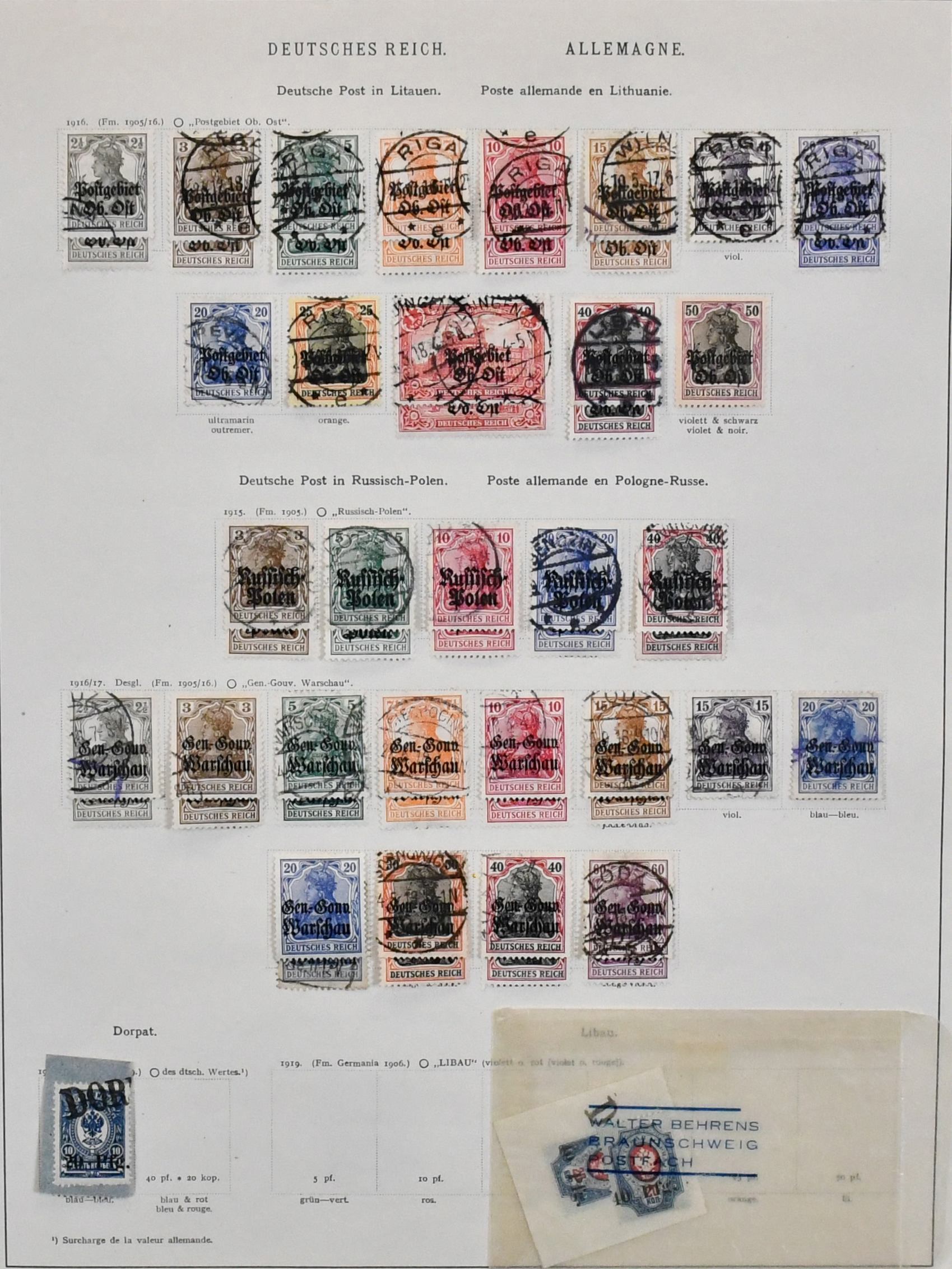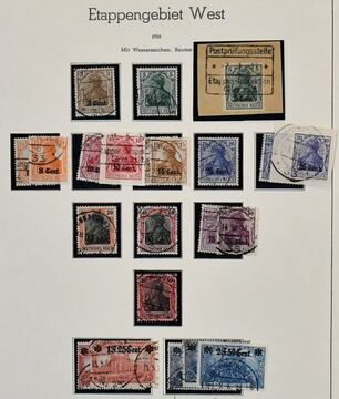Deutsche Bes. I. Wk., gest. und ungebr. Sammlung auf alten Albumblättern, dabei Belgien und Etappe West gest. je kpl., Ob. Ost kpl. mit Dorpat Nr. 1-2 gest. und Nr. 2 zusätzlich postfr., Polen gest. kpl., sowie etwas Rumänien