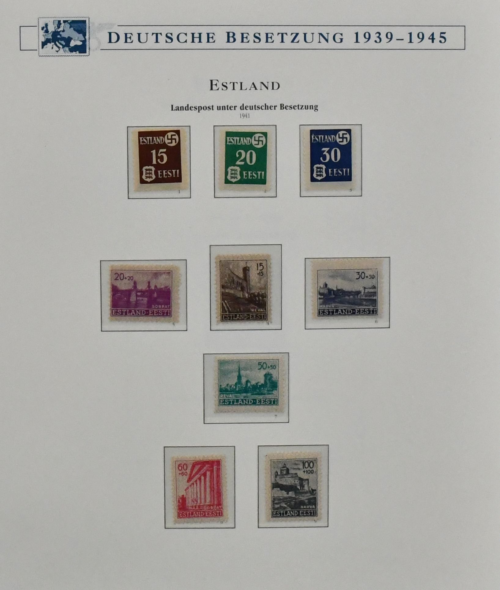 Deutsche Bes. II. Wk., postfr. Slg. im Vordruckalbum, dabei GG und Böhmen und Mähren kpl., Estland, Laibach, Litauen, Serbien usw., ferner Feldpost der franz. Legion mit Nr. II-X