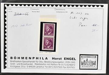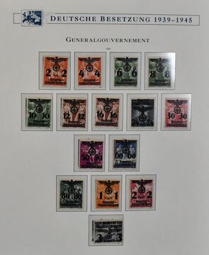 Deutsche Bes. II. Wk., Slg. mit Böhmen u. Mähren kpl. inkl. Nr. 1/19 gest. (Mi. 400,-), sonst postfrisch, GG postfr. ab Nr. 1/13, von Nr. 40-125 kpl., inkl. Dienst ab Nr. 1/15, sowie etwas Bizone im Anhang, im Borek-Vordruckalbum
