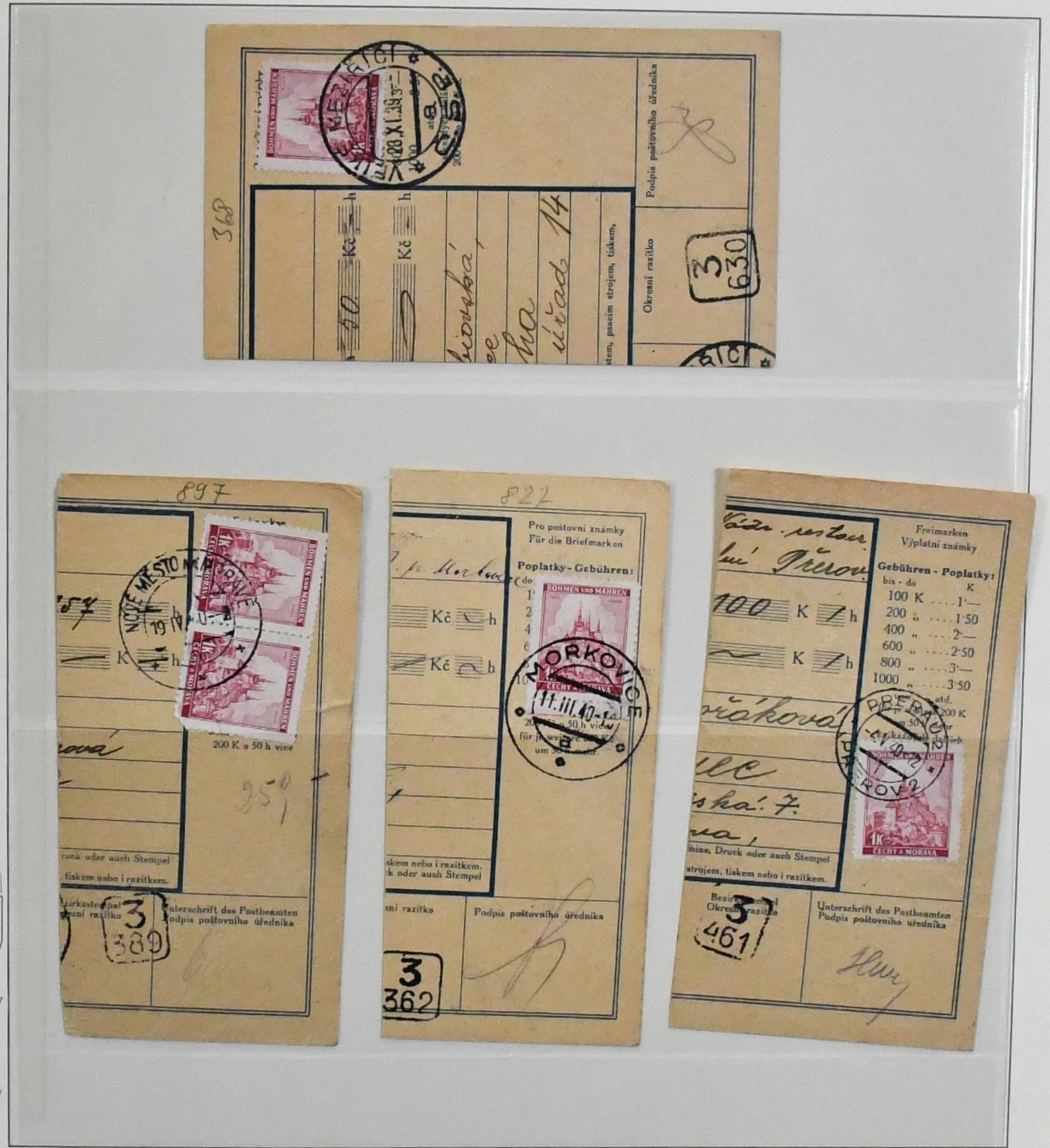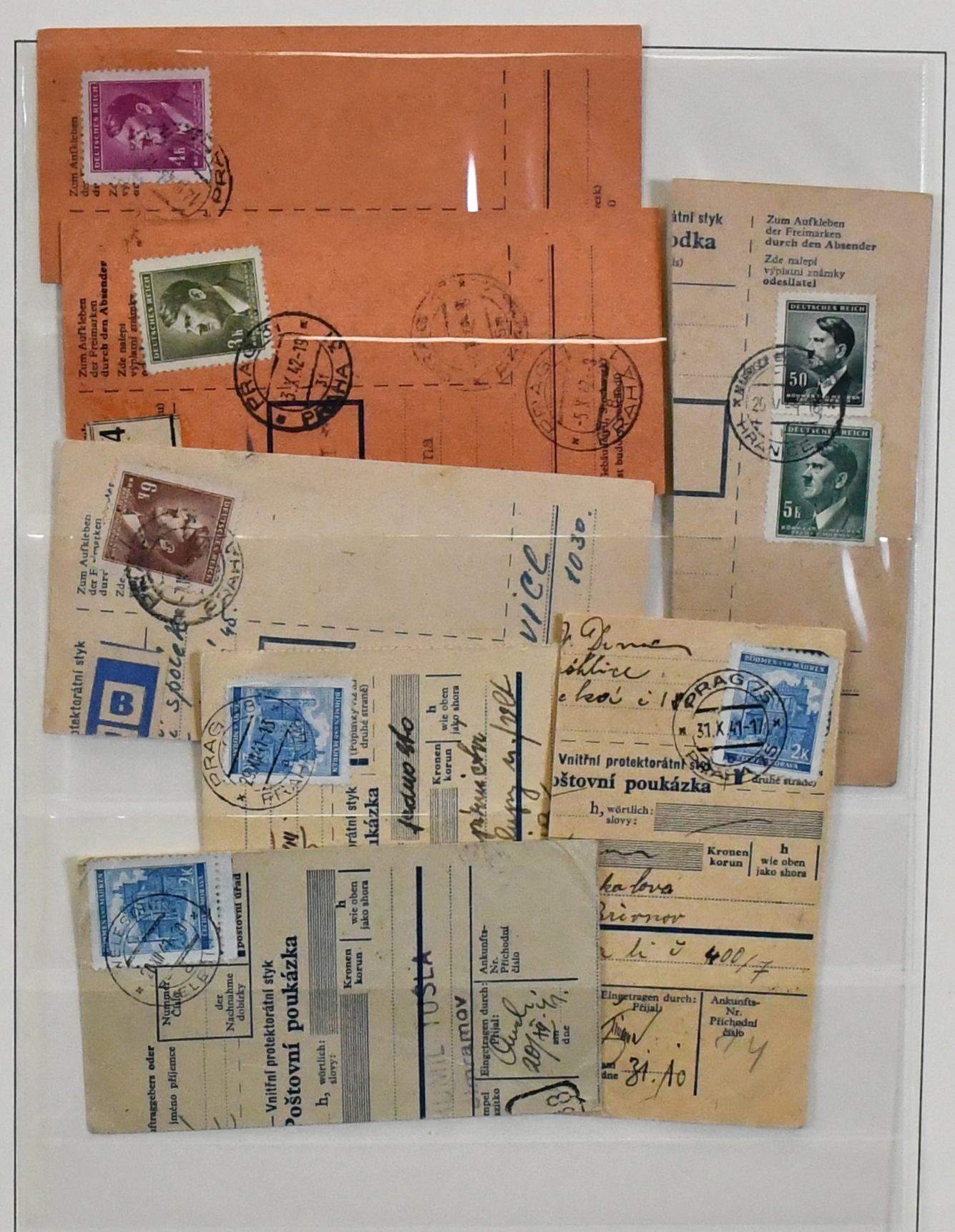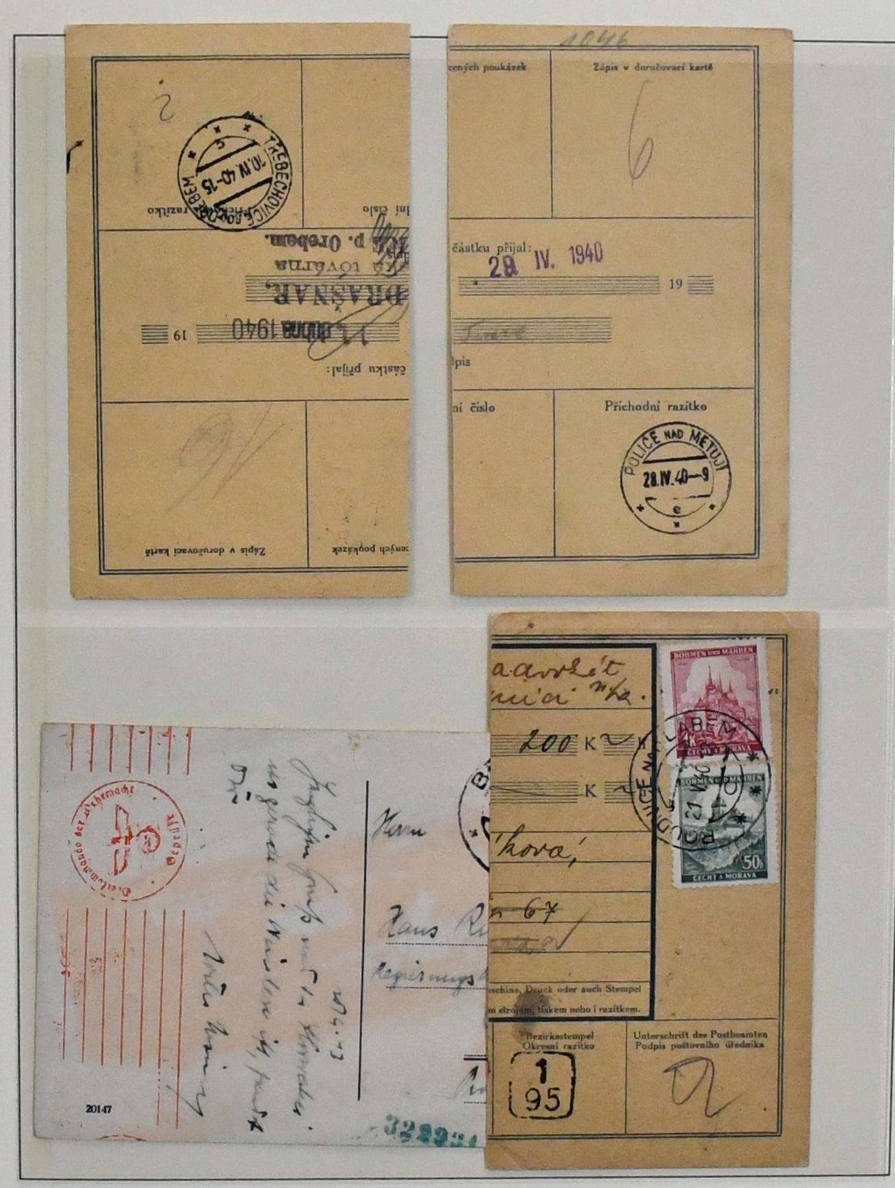 Böhmen und Mähren, Partie von 47 Belegen im Album, dabei Paketkarten und -abschnitte, R- und Dienstbriefe