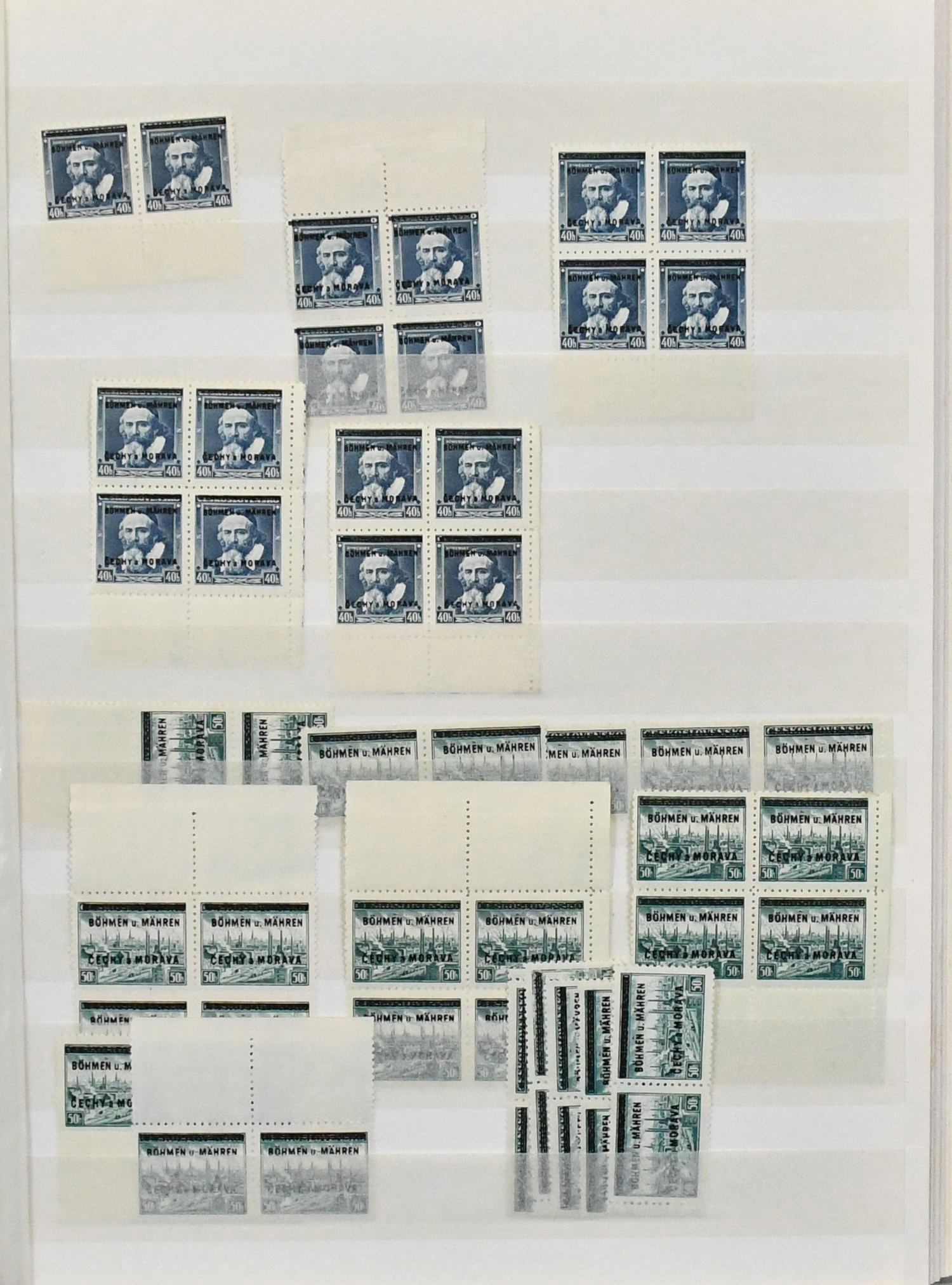 Böhmen und Mähren, postfrischer Händlerbestand ex Nr. 1-19, auch Höchstwerte vielfach, teils in Einheiten, mit Viererblöcken, Ecken usw.