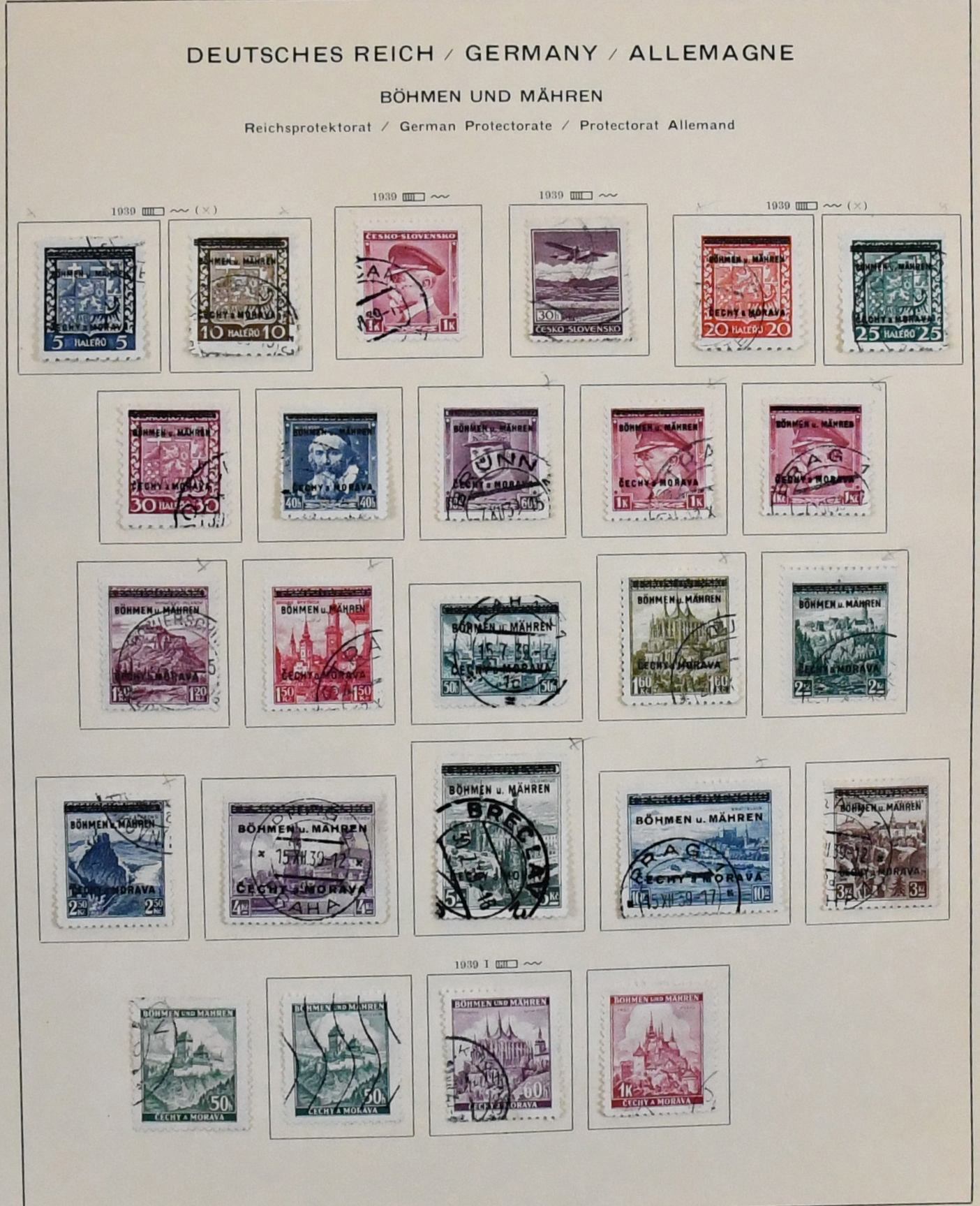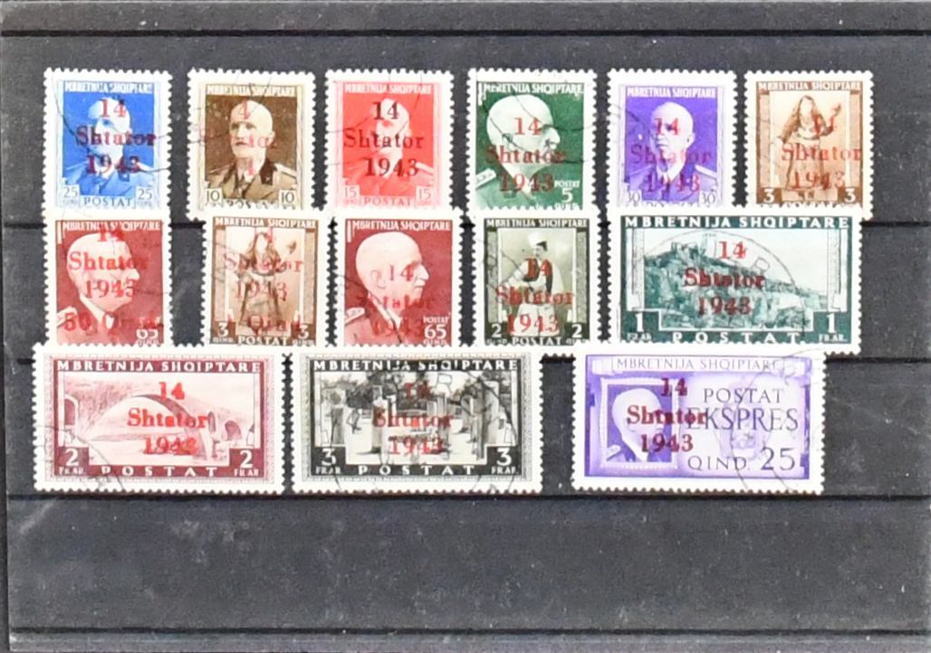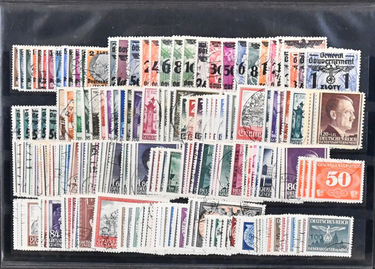 Bes. II. Wk., die Gebiete Böhmen und Mähren (Nr. 1-19 gepr. Gilbert), Generalgouvernement, Elsaß, Lothringen und Luxemburg je gestempelt komplett, zusätzlich die letzten drei Gebiete auch noch postfrisch kpl., als Beigabe Albanien Nr. 1-14 gestempelt, aber leider mit Falschstempel