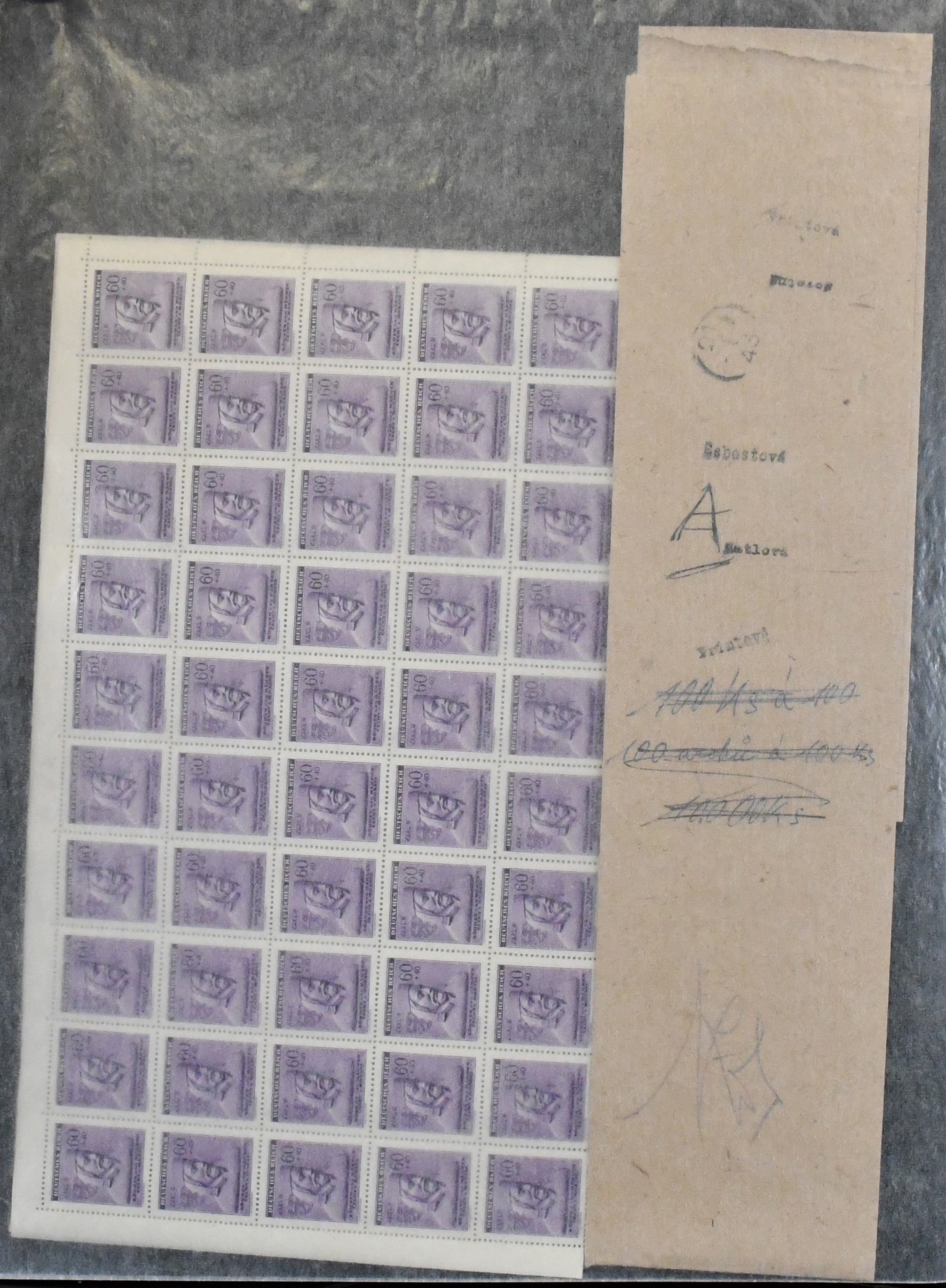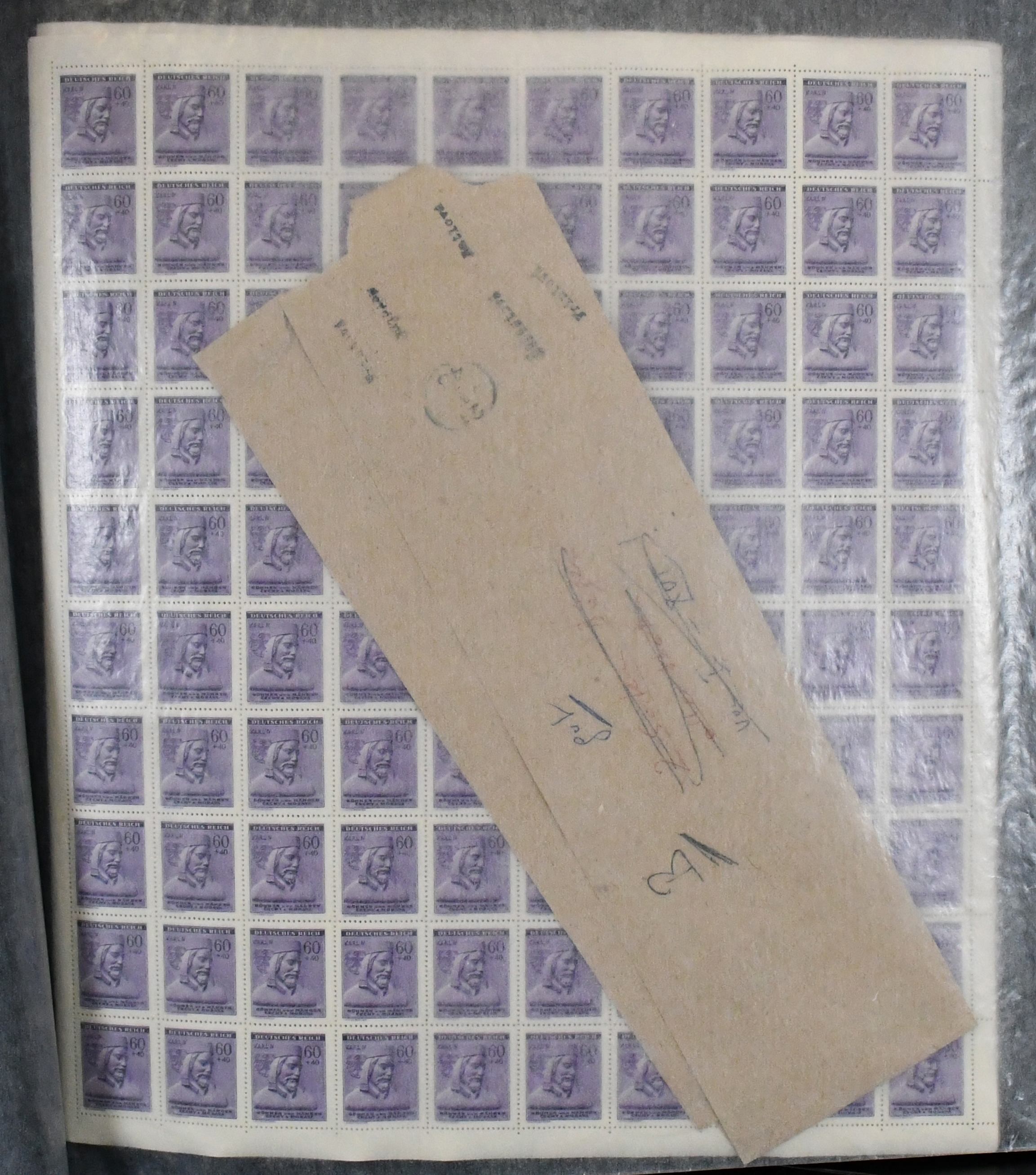 Böhmen und Mähren, Ausgabe "Tag der Briefmarke", Mi.-Nr. 113, tausende von postfrischen Marken in Bogen und Bogenteilen, teils mit Plattenfehlern