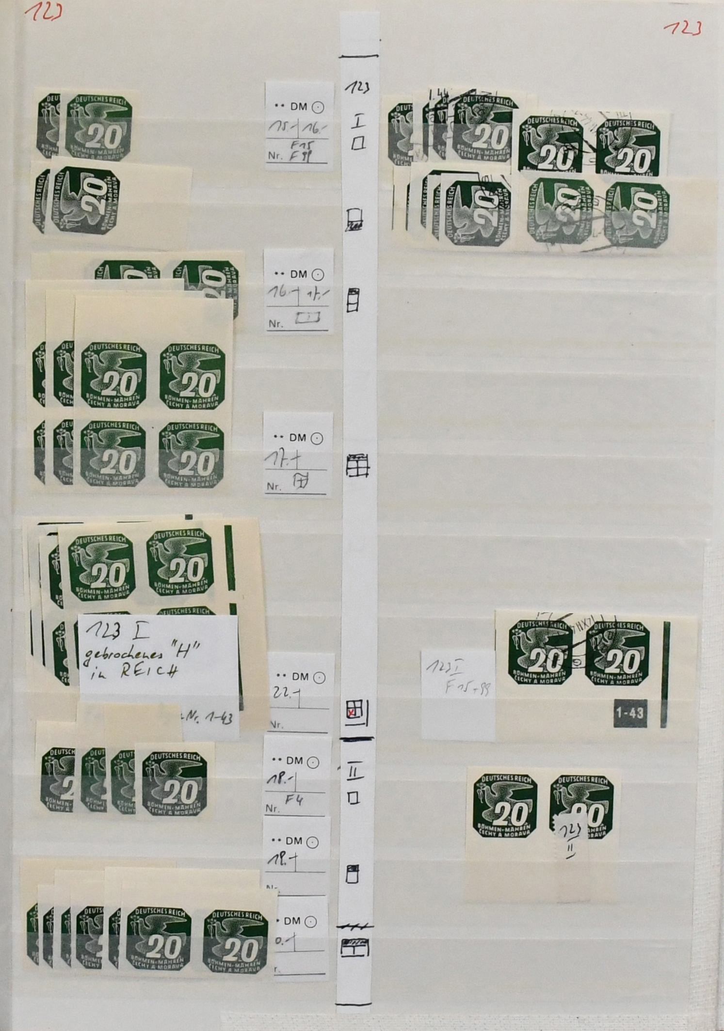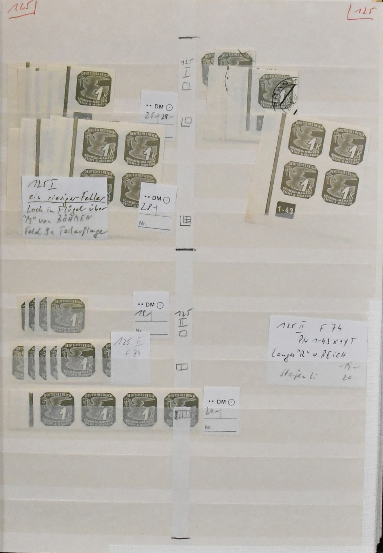 Böhmen und Mähren, Abarten, dickes Lagerbuch nur Abarten, alle sorgfältig beschriftet, viel Material, das selten angeboten wird