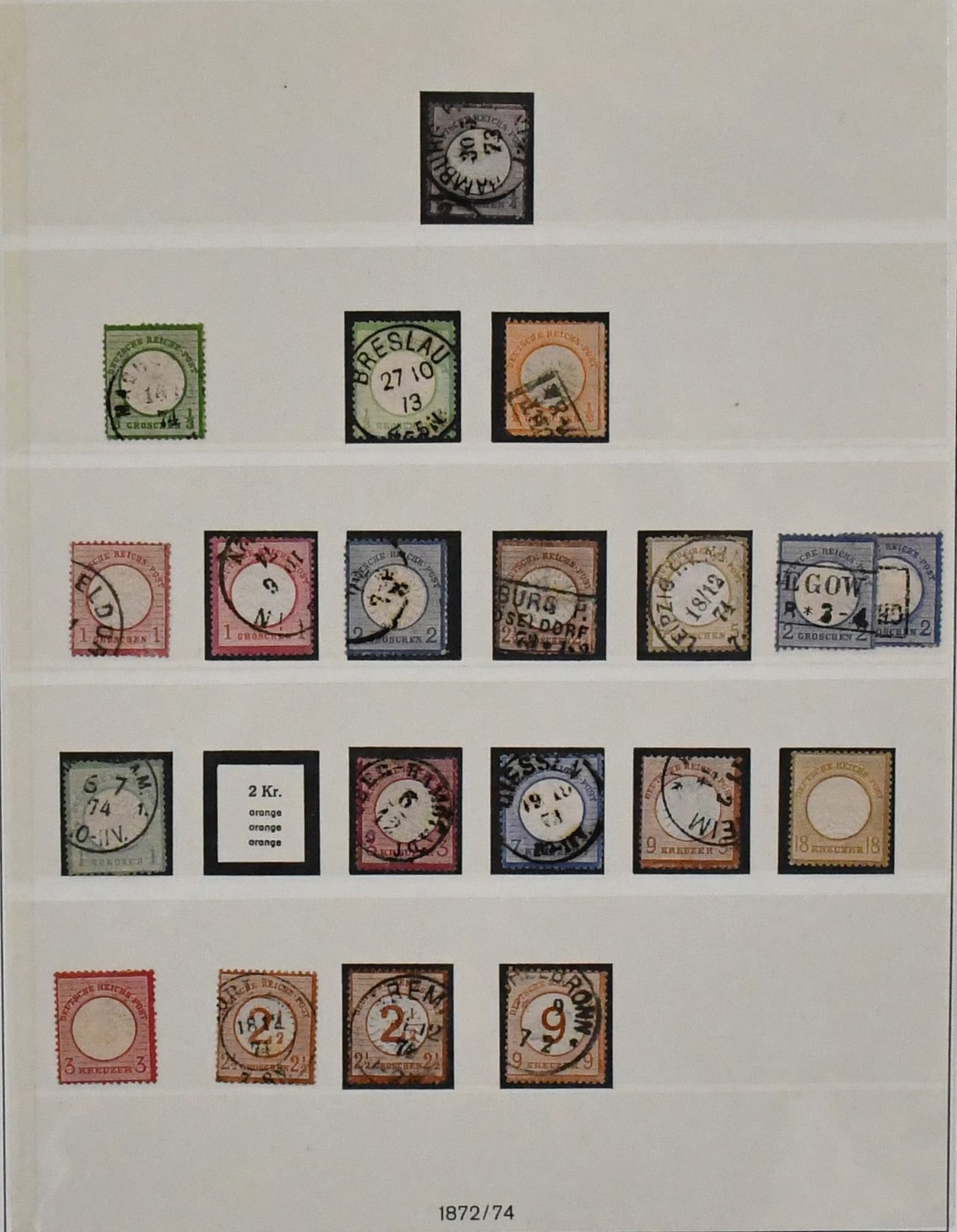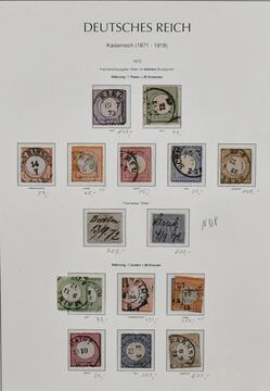 Deutsches Reich, 1872/74, gestempelte Sammlung ab Nr. 1/11, ferner Nr. 12 mit Federzug, Nr. 16/23, inkl. Nr. 17a/b und 21a/b, 27a/b, 28 mit Mängeln, doppelt gepr. Sommer BPP, usw. Dazu NDP Nr. 26. Mi. 7500,-