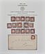 Brustschilde, reichhaltige Slg. mit insbesondere 86 Belegen, sowie diversen Marken (diese wiederum unter Stempel-Gesichtspunkten), bei den Belegen die verschiedenen Portostufen, etliche Auslandsbriefe (u.a. ein seltener Grenzrayon-Einschreibebrief), Besonderheiten wie 1 Kr. kl. und gr. Schild als EF, MeF etc., oft sehr gute Erhaltung