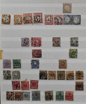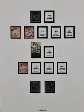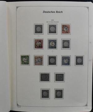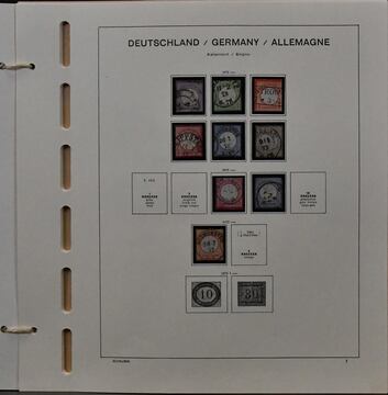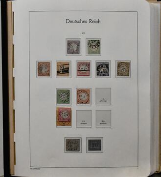 Deutsches Reich, 1872/1923, gestempelte Slg., beginnend mit unterschiedlichem Brustschildteil mit alleine 4000,- Mi., inkl. Nr. 1/6, 11, Nr. 13 mit Federzug, 27b usw., auf SAFE-Vordrucken, ferner Germania mit einigen Querformaten, Infla inkl. Nr. 119/38 etc. Dazu unbewertet eine gest. Nr. 28 (Mi. 2800,-) mit Eckfehler
