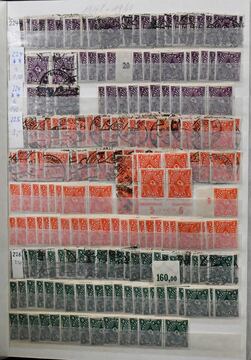 Deutsches Reich, ca. 1920-1932, enorm reichhaltiges Lagerbuch, vor allem Infla postfr./ungebr. u. gest., mit ca. 9-10.000 eng gesteckten Werten, dabei einiges auch an geprüften Werten, Hochinflation reichlich, Randstücke in Mengen, Weimar mit besseren Nothilfe-Werten, alleine aufgrund der Menge schon eine kleine Fundgrube