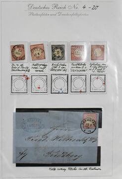 Deutsches Reich, Plattenfehler und Besonderheiten, 1872-1922, Spezialslg. im Ringbinder auf 47 selbstgest. Blättern, graphisch schön beschriftet und mit etwa 550 Werten sehr gut bestückt ab den Brustschilden, starker Teil Krone-Adler, sowie Querformate Germania ex Nr. A113-117