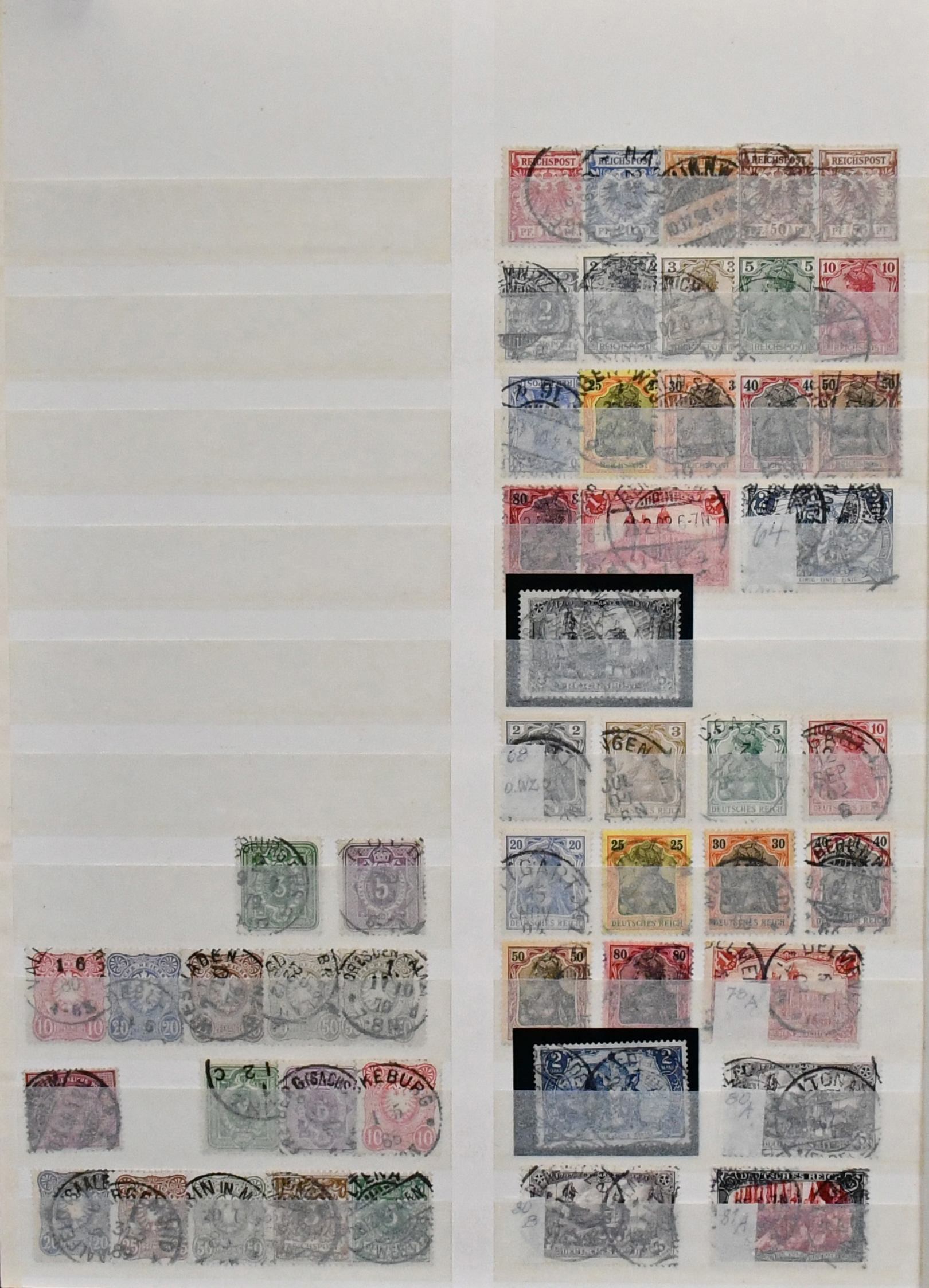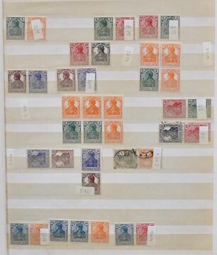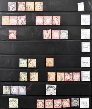 Deutsches Reich, 1872/1934, Sammlung, beginnend mit 44 Brustschilden (alleine 1000,- Mi.) ab Nr. 1, ferner Pfennig/e bis Infla, meist mehrfach, inkl. diversen Germania-Querformaten, Nr. 119/38 inkl. Nr. 138II, sowie Weimar mit gutem Zus.-Druck S54, Nothilfe 1931 gest. usw. Mi. rund 3500,-