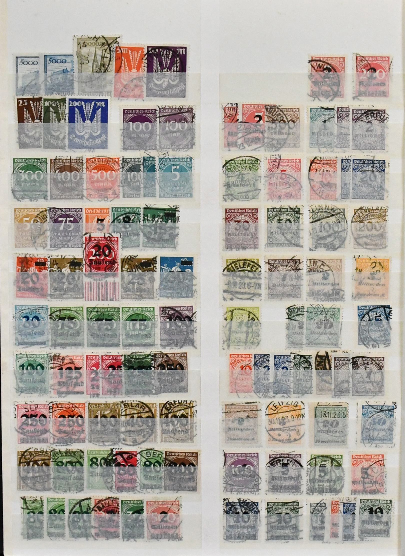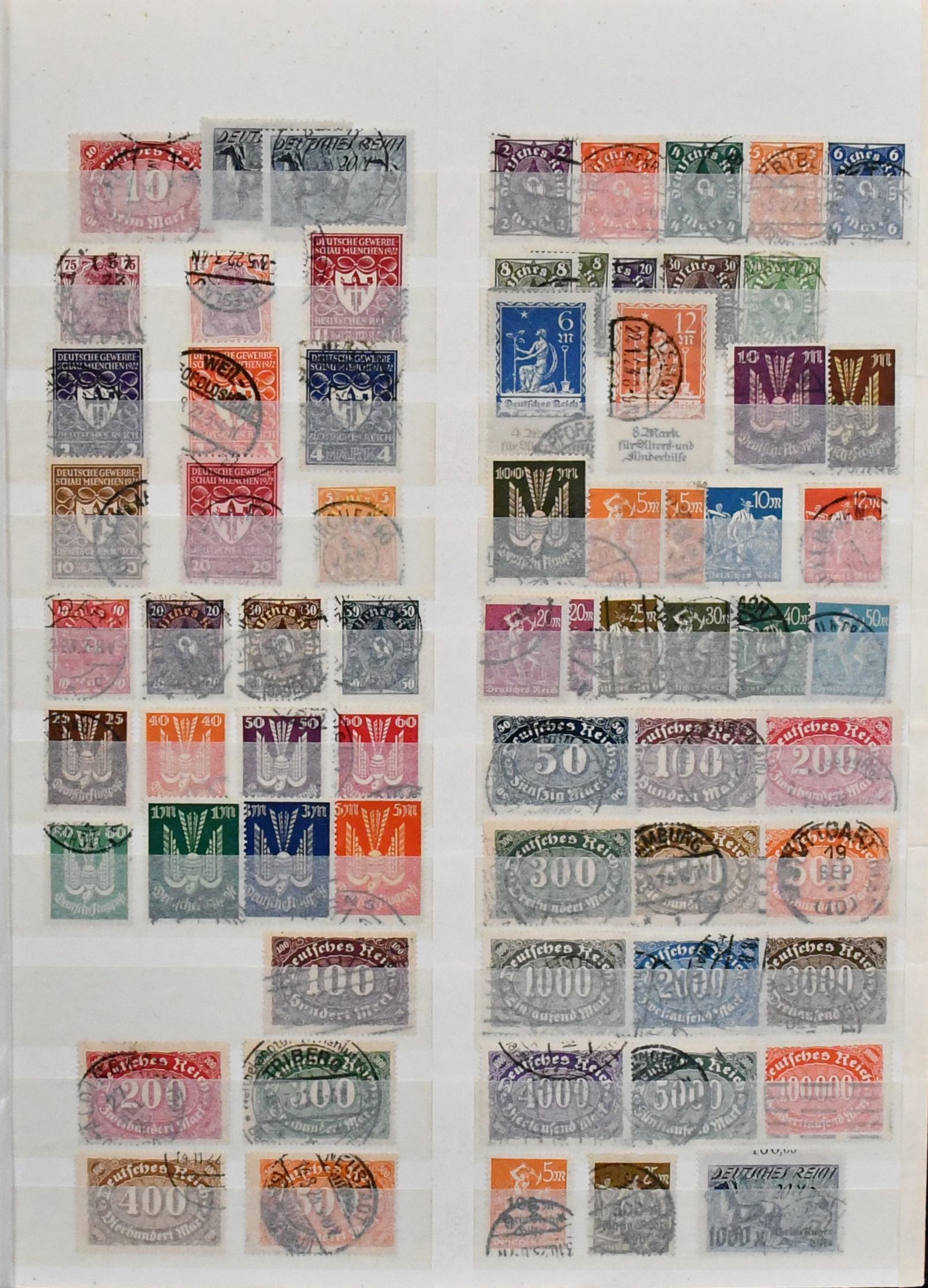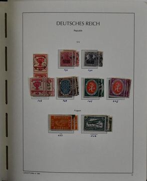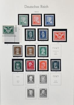 Deutsches Reich, 1918-1932, umfangreicher Sammlungsbestand im Vordruckalbum, hauptsächlich gestempelt, oft zusätzlich ungebraucht, dabei Infla weitgehend kpl. gestempelt und oft mit Farben gesammelt (chancenreich!), Weimar mit besseren wie Nothilfen, Nr. 351/54, 398/401, 407/409, 425/29, 430/34, 450/53, 459/62, Dienst kpl. usw.