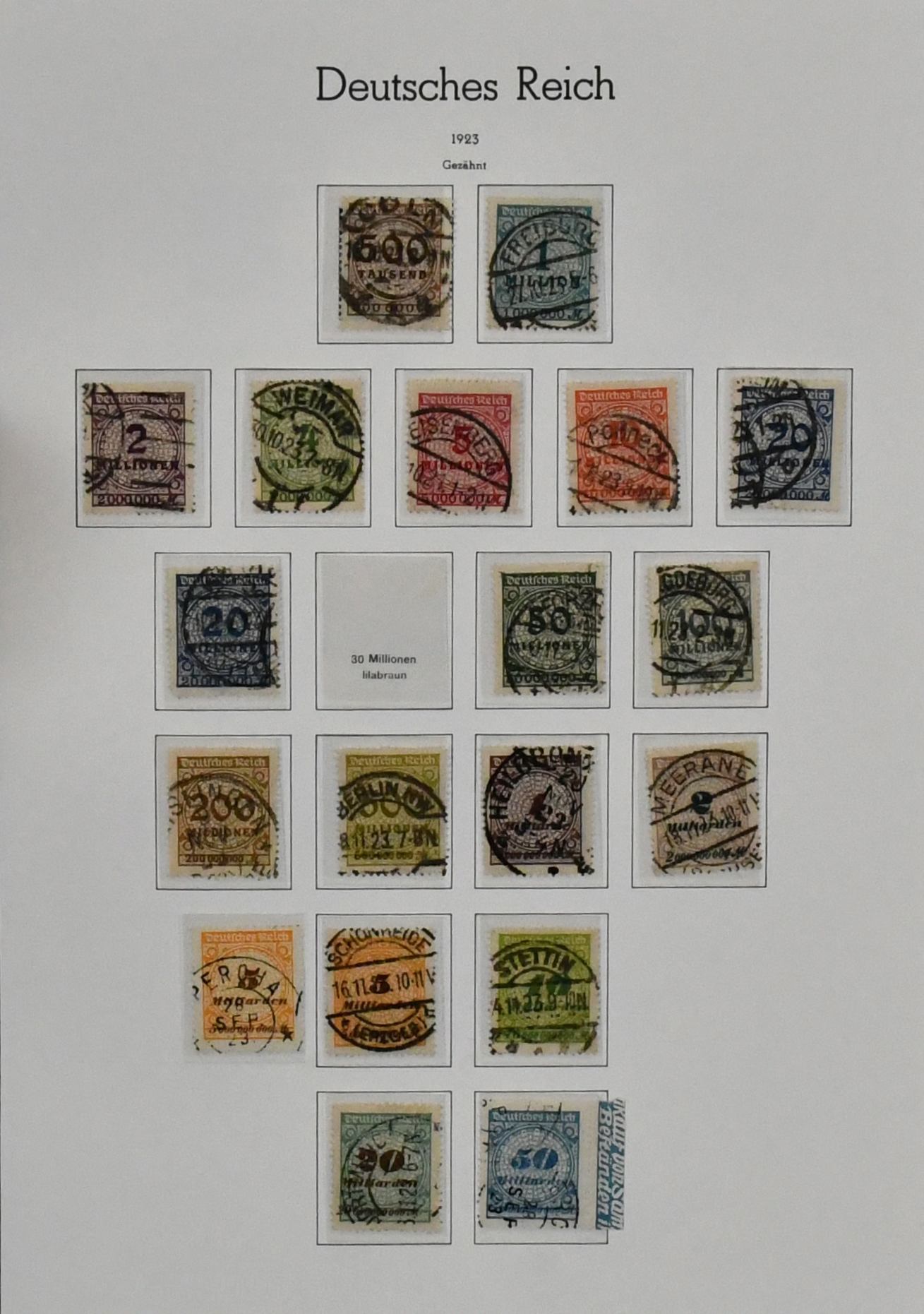 Infla, gestempelte, in der "Breite" reichhaltige Slg. inkl. Nr. 119/38, 158/76, 233/34, 239/45, 258/60 usw., auf Leuchtturm-Vordrucken. Mi. 1700,-