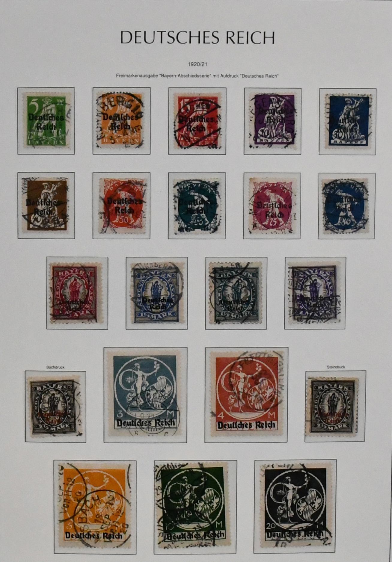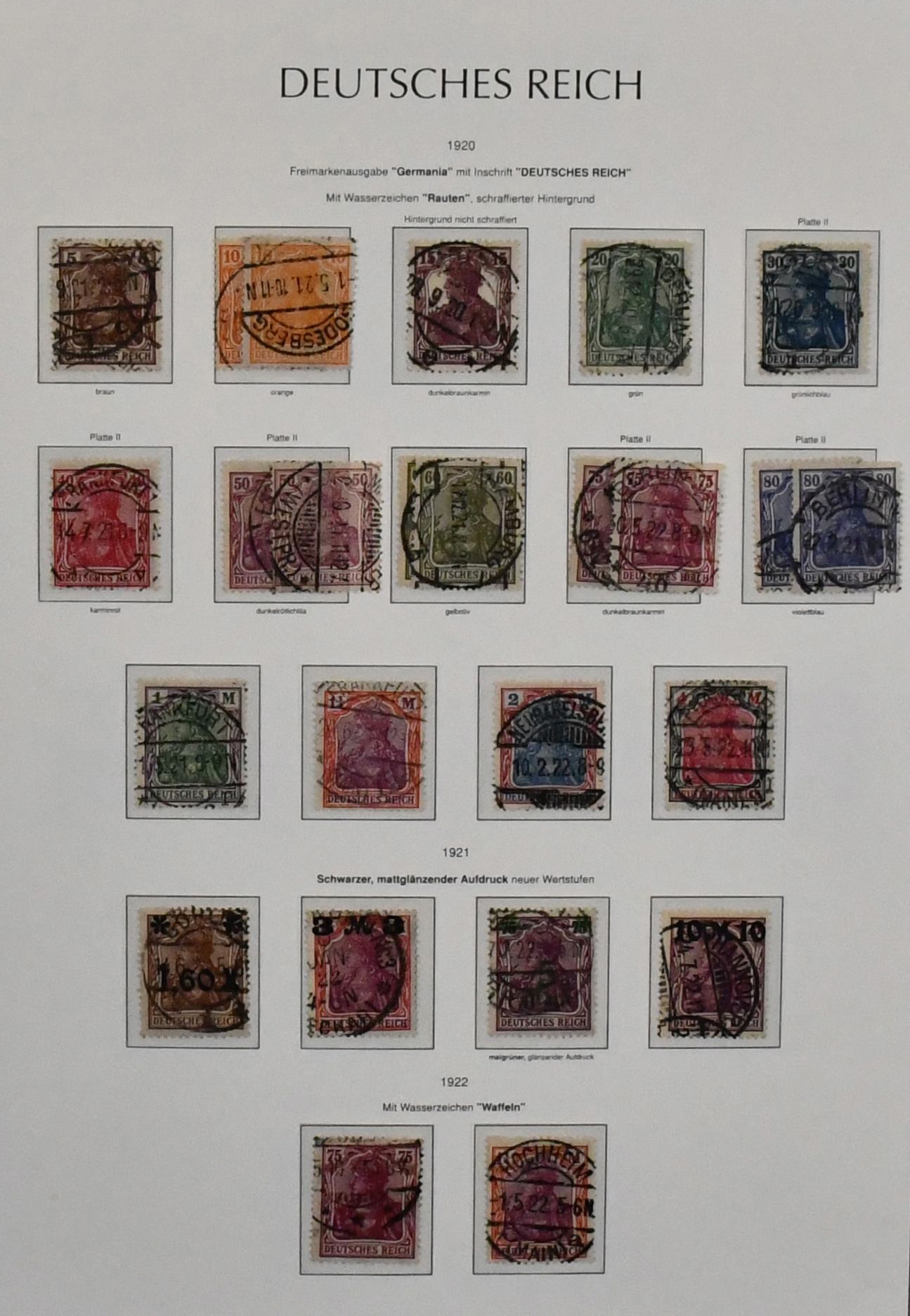 Deutsches Reich, Germania und meist Infla, gest. Slg. mit Nr. 83/93I/II, 119/38, 144/46I gest., 158/76, 177/96 fast kpl., 233/34, 245 gepr., 277/96 usw., auf Leuchtturm-Vordrucken. Mi., sehr zurückhaltend gerechnet, bereits 1500,-