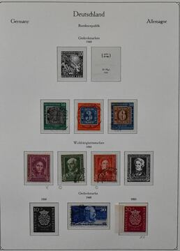 Deutschland nach 1945, Sammlungsbestand in drei Vordruckalben, dabei Bund gestempelt 1949-1989, teils doppelt, mit Anfängen wie Nr. 113/15, 139/40, 141/42, 143/46, 156/59, 173/76 etc., ferner postfr. Teile ab 1960 mit Heuss lieg. Wz. und Lumo etc.