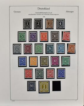 Westzonen, reichhaltige, untersch. erhaltene Slg. auf Vordrucken, dabei Frz. Zone mit Sondermarken, Bizone mit u.a. Bauten wg ungebr., Serie eg postfr., Bl. 1 postfr., Kontrollrat etc.